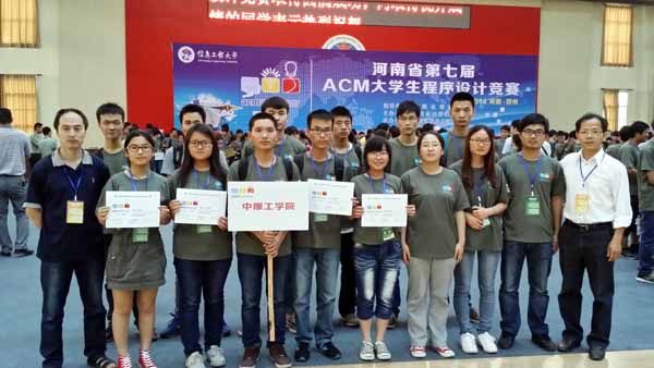 国际大学生程序设计竞赛(简称ACM/ICPC)是由计算机学界最具权威性的组织--美国计算机协会ACM发起的,是世界上公认的规模最大、水平最高的全球性年度竞赛,至今已成功举办43届。其宗旨是促进大学生运用计算机来充分展示自己在压力下的程序设计能力、分析问题和解决问题的实践能力、团队协作精神以及创新思维能力。河南省ACM大学生程序设计竞赛是ACM国际大学生程序设计竞赛的重要组成部分,我校教务处、学生处、校团委以及计算机学院的主要领导历来高度重视,从参赛学生的遴选、组队、培训与竞赛等方面给予了悉心指导,在历届比赛中,我校都取得了优异成绩。