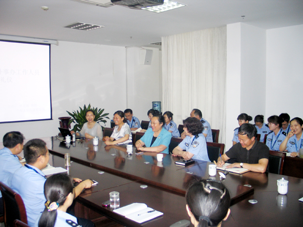 在靳处长的带领下,杜副院长一行兴致勃勃地参观了出入境管理处办公区域和对外办事大厅,听取了处领导对各项工作制度和办事规范流程等管理情况的介绍。