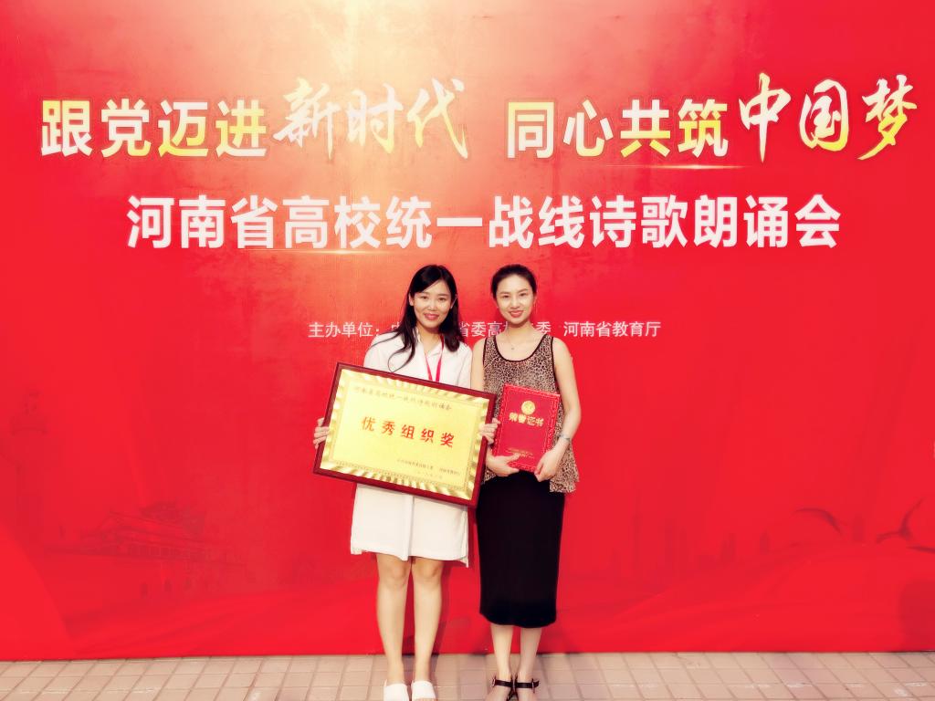 6月2日,河南省高校统一战线诗歌朗诵会在河南师范大学落下帷幕,我校新闻与传播学院梁亚宁、宋立、谢玉洁、杨关道代表学校参赛,参赛队员在决赛中配合默契,声情并茂,经过激烈角逐最终荣获一等奖,我校获优秀组织奖。