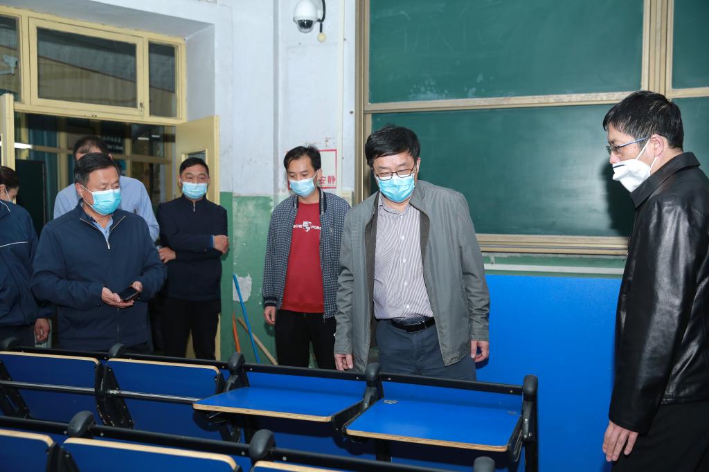 10月9日起,按照分批、错峰返校原则,我校学生将陆续返校,开启新学期的学习生活。为确保学生返校复学各项工作顺利进行,10月6日,校长刘国际、副校长张宝强带领党政办公室、教务处、研究生处、学生处、保卫处、后勤服务中心主要负责人一行在龙湖校区检查指导返校复学保障工作。