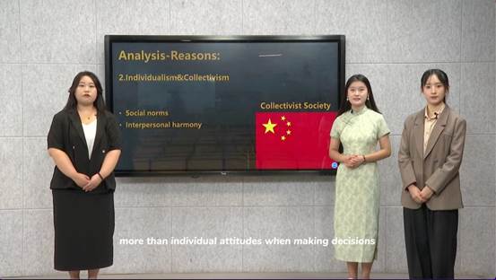 本次大赛旨在助力高等学校人才培养新模式探索,推动构建人类命运共同体和促进“一带一路”国际合作,培养能“讲好中国故事,传播好中国声音”的复合型、高素质国际化人才。外国语学院积极组织初赛选拔,推荐由外国语学院冯瑶佳、新闻与传播学院赖涵玉、能源与环境学院赵田野三位同学组成的团队,代表我校参加省赛。参赛队员在指导老师们的带领下,通过长达5个月的积极备赛,反复修改、打磨表演剧本,经过案例展示和评委问答两个环节,凭借深厚的跨文化知识内涵、直观清晰的理论分析、极具感染力的在线表演赢得评审专家和线上观众的一致好评,最终获得二等奖第一名。