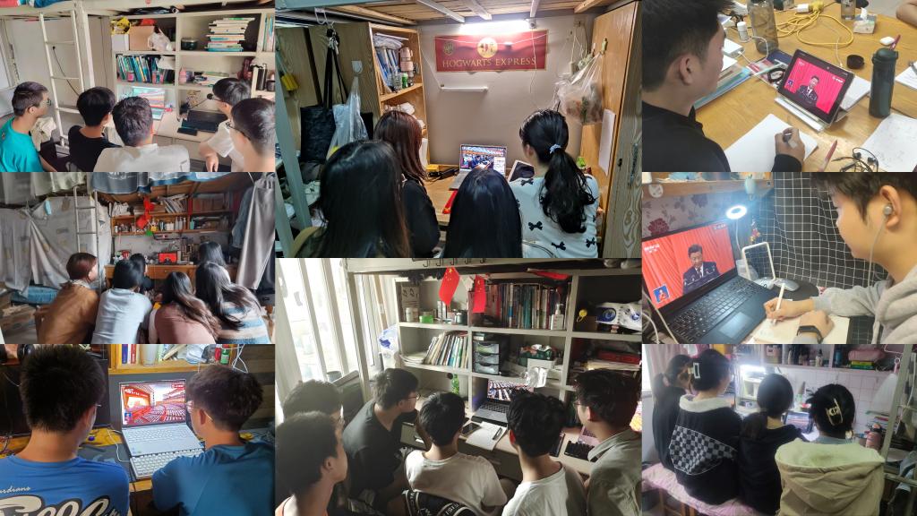 在会议室,在宿舍,在餐厅,在校园路边……广大干部师生纷纷通过电脑、手机、电视等观看大会开幕直播,认真听报告、专心做笔记,用心领会习近平总书记代表第十九届中央委员会向大会所作的工作报告精神。