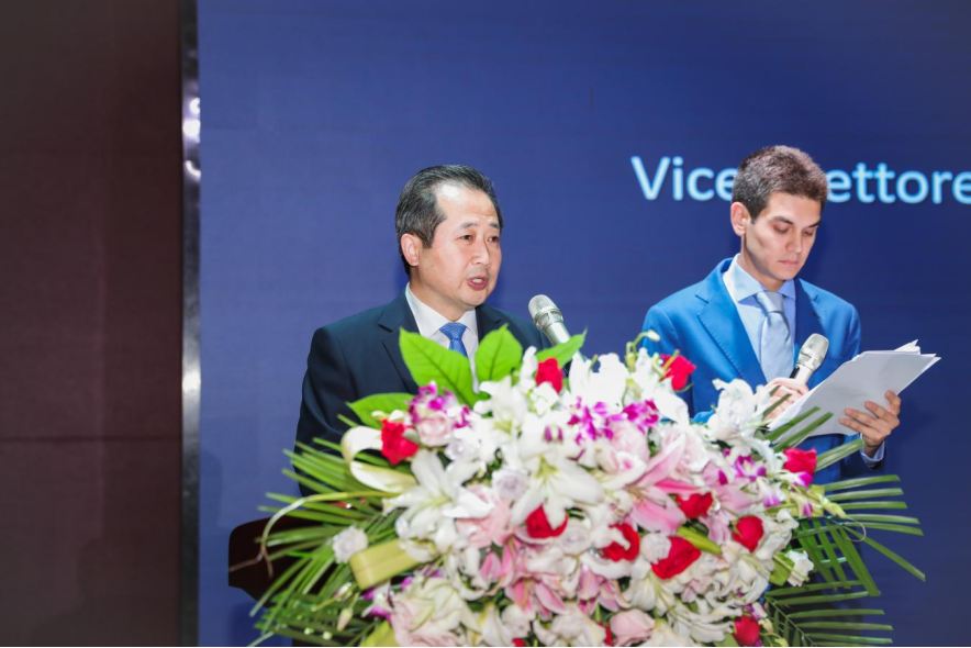 王华星在致辞中对我校主动服务国家战略,加快和扩大新时代对欧开放合作,成功组织“豫见意大利”人文交流活动,通过大师、大赛、大交流活动,推动了中意语言学习、人才联合培养、师生交流,教育改革创新,走出了具有国别特色的人文交流之路表示赞赏。王华星讲到,河南省是文化大省,与意大利高校持续开展了“武林汉韵”“舞龙舞狮”等丰富多彩的人文交流活动,期待通过中意高校未来的持续努力,全方位促进豫意教育、文化、艺术、音乐、旅游等方面的交流合作,努力开创中意教育交流、文化交融、民心相通新局面,让世界文明百花园里的中意文明之花姹紫嫣红、生机盎然。