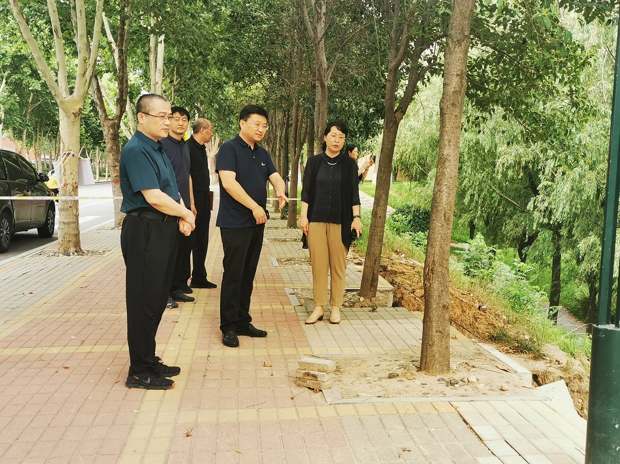 7月20日,省教育厅组干处(统战处)三级调研员高峰,干部杨二瑞一行来校督查指导防汛备汛工作。我校副校长海然,党政办公室、保卫处、后勤服务中心相关负责人陪同。