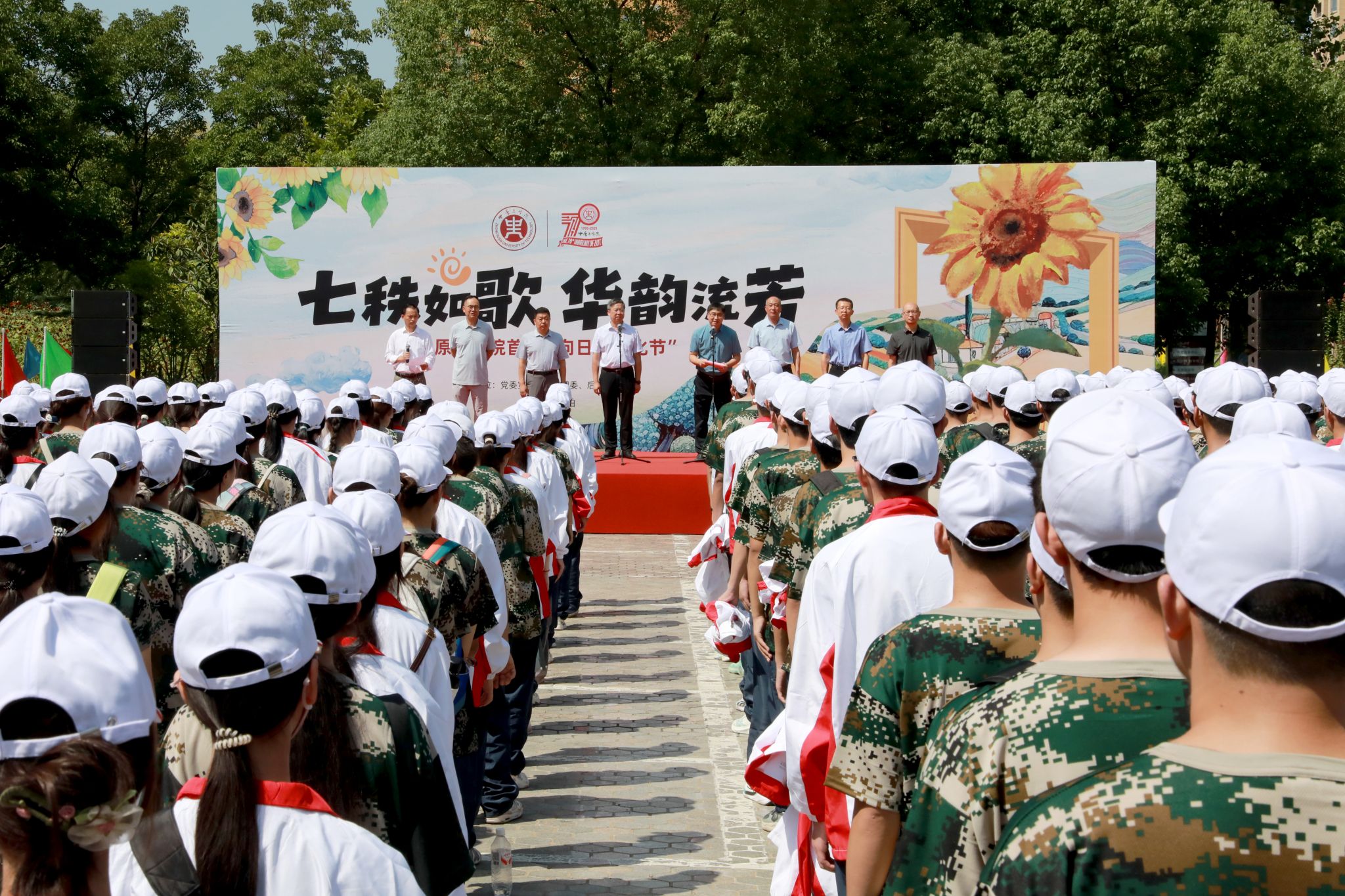 杨坤在致辞中表示,举办向日葵文化节旨在以景化人、以美育人,在沉浸式体验中,让大家深刻领悟到秋日向日葵所诠释的谦逊内敛、成熟丰硕与感恩奉献的精神力量。希望以此次文化节为契机,让更多师生感受中华优秀传统文化的魅力,增强文化自信,营造更加浓厚的美育氛围。他祝福同学们如秋日向日葵那般,谦逊积淀、求真务实;心怀感恩、回报家国;坚韧成熟、勇毅前行,以丰硕学识和坚实脚步,自信从容地迈向人生新阶段。