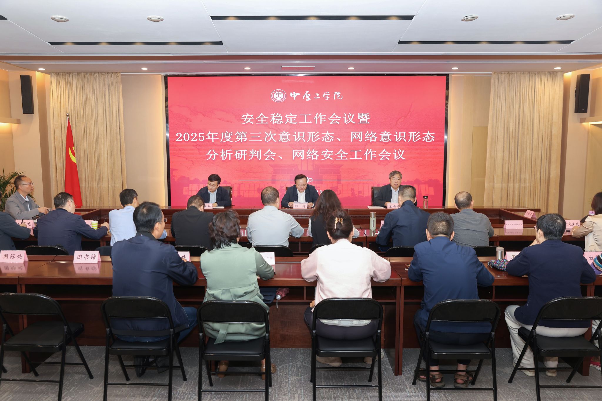 9月19日,我校在龙湖校区召开安全稳定工作会议暨2025年度第三次意识形态、网络意识形态分析研判会、网络安全工作会议。党委书记郭涛出席会议并强调工作要求,党委副书记、工会主席宋晓炜,副校长瞿博阳,学校意识形态协调联动部门负责人、网络安全领导小组成员、各直属党组织负责人参加会议。
