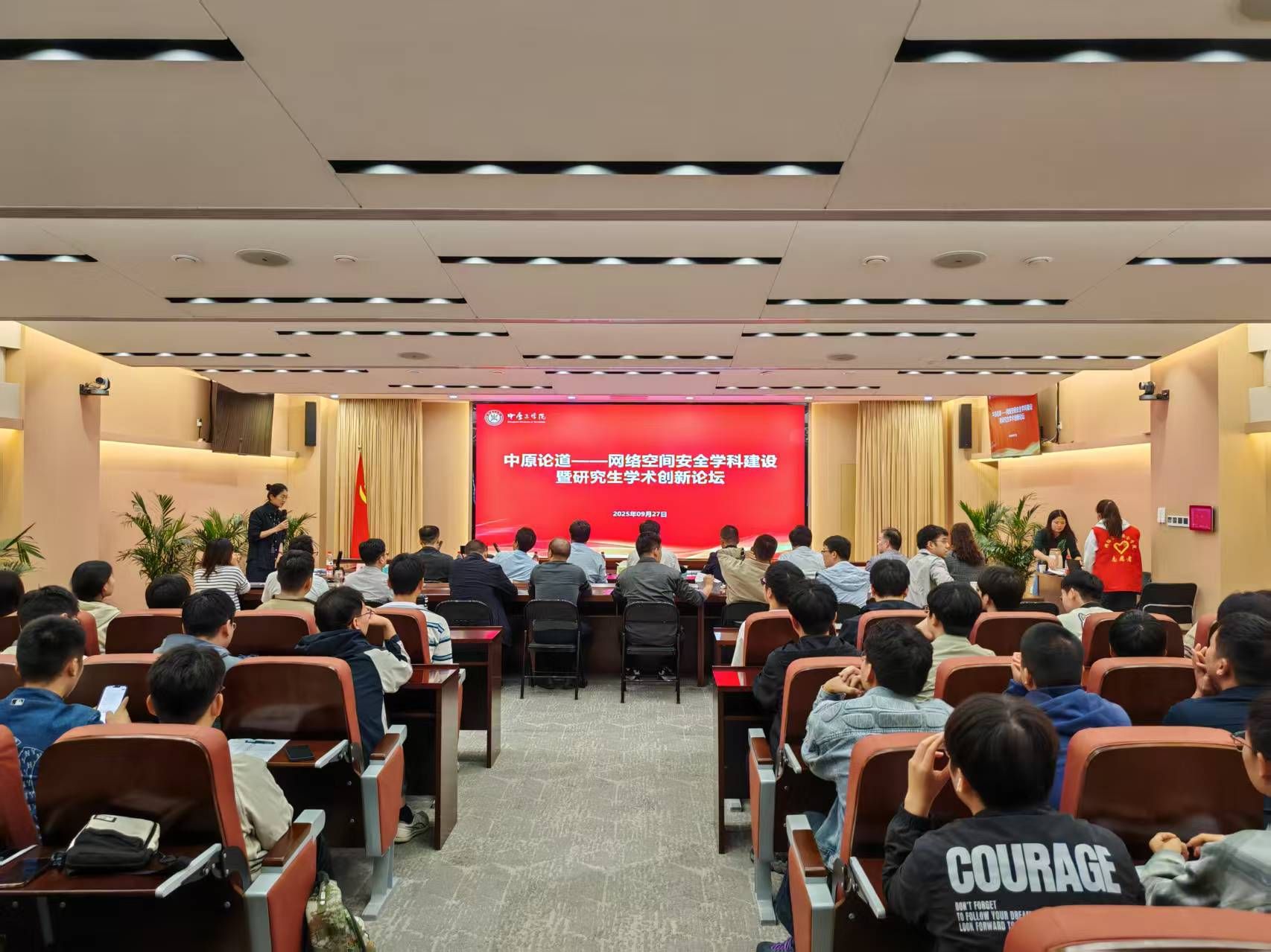9月27日,由我校研究生处与网络空间安全学院联合主办的“中原论道——网络空间安全学科建设暨研究生学术创新论坛”在龙湖校区举行。暨南大学副校长翁健教授、上海交通大学网络空间安全学院院长谷大武教授、甘肃政法大学网络空间安全学院院长安德智教授、桂林电子科技大学丁勇教授等嘉宾应邀出席。