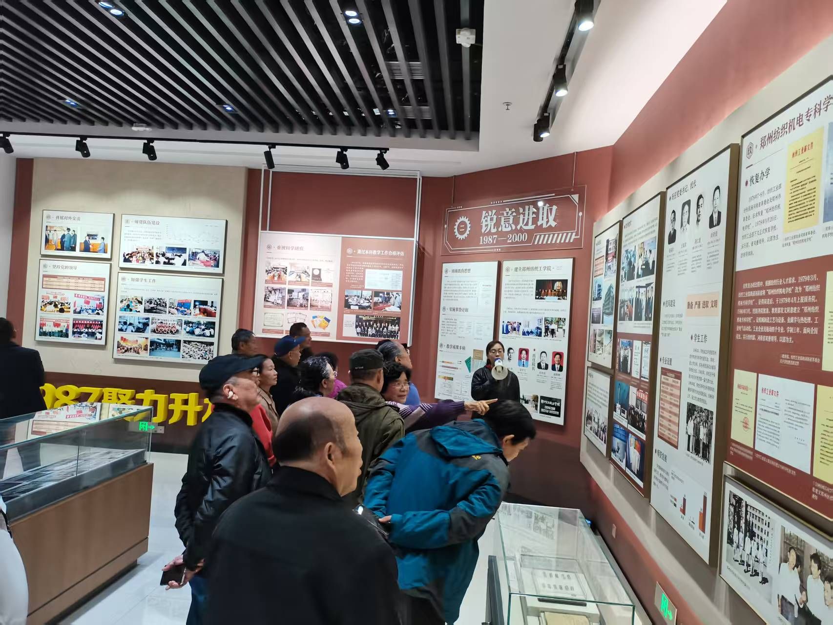 在龙湖校区校史馆,大家在讲解员的带领下,以时间为轴线,重温学校发展光辉历程。承载记忆的老照片,见证历史的真品实物,详实严谨的文字史料,清晰系统地反映出学校70年来在学科建设、人才培养、科学研究等方面取得的办学成果,生动直观地呈现出一代代老同志为学校事业发展所倾注的智慧与艰辛。
