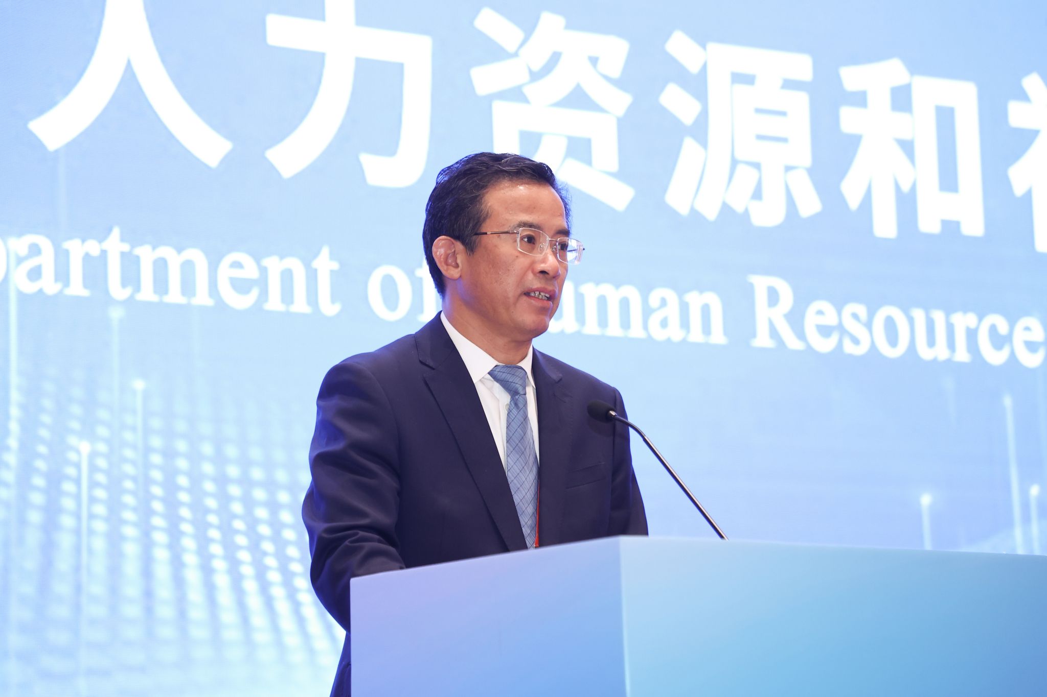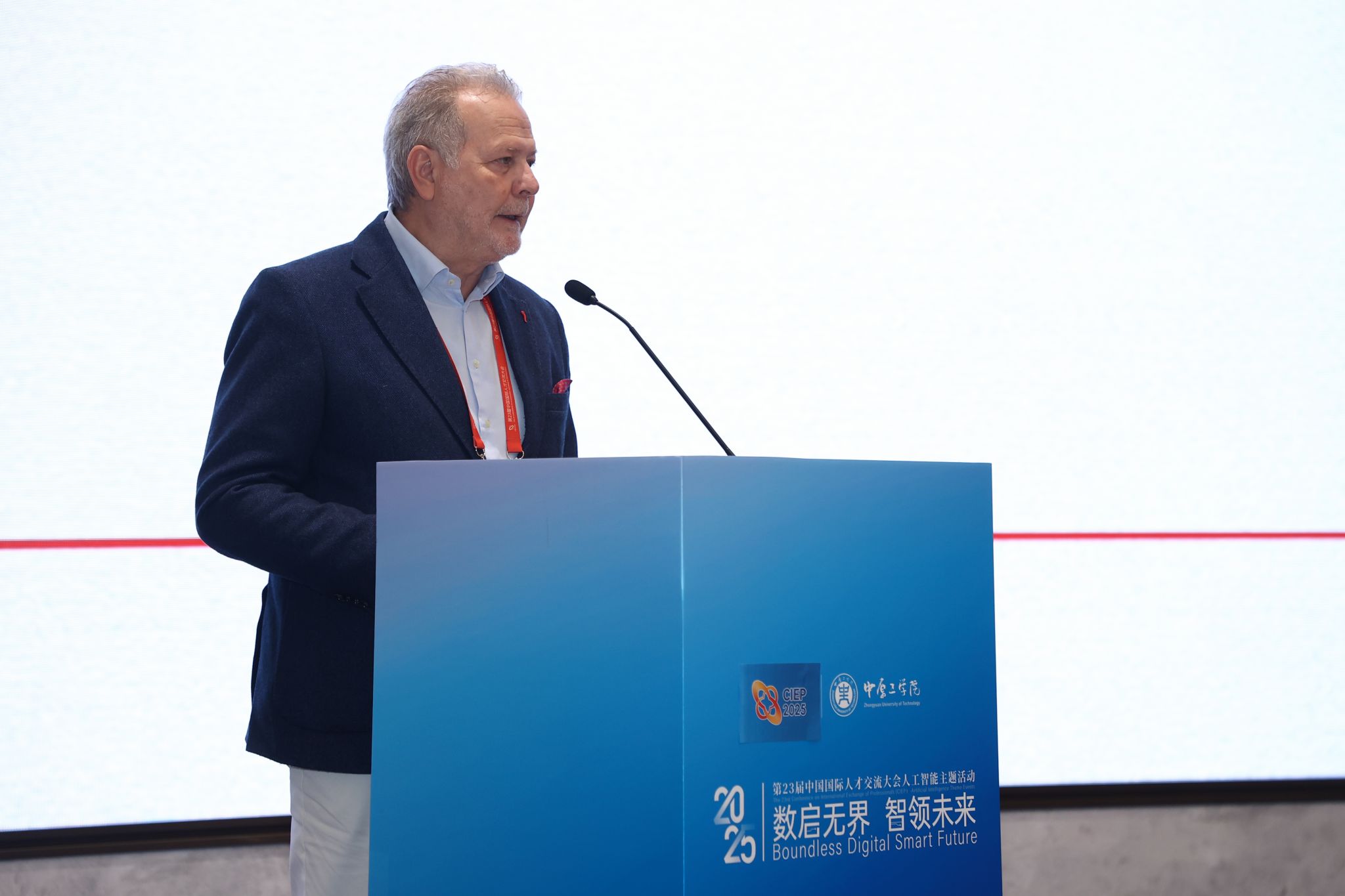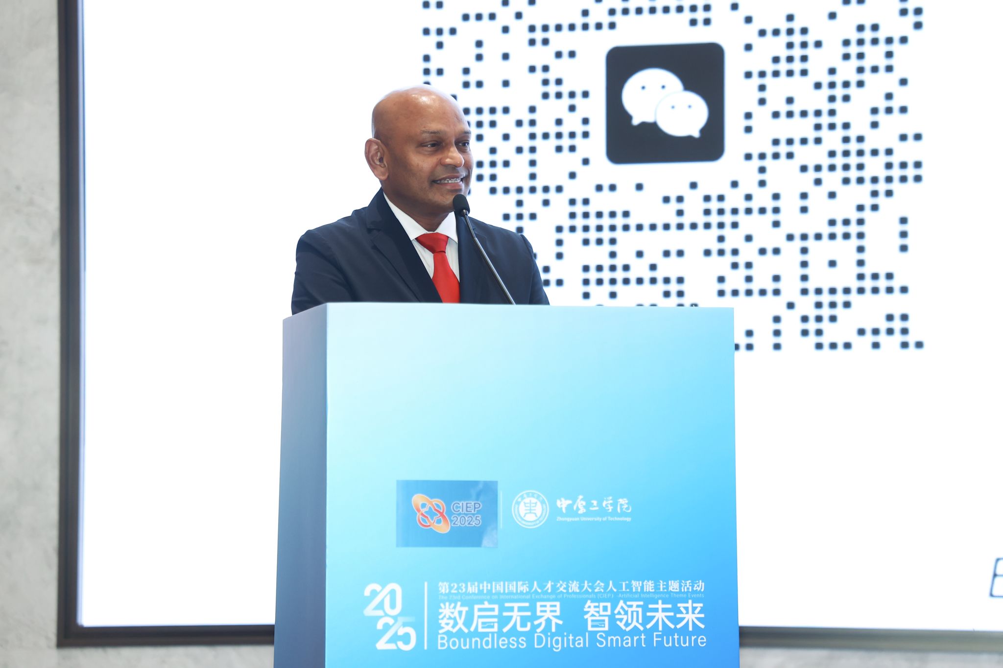 丁同民致辞,介绍了河南人工智能产业发展现状和人才引育情况,指出河南将人工智能作为赋能传统产业升级、培育新兴业态的关键引擎,正以前所未有的力度推动人工智能与实体经济深度融合。河南省人力资源和社会保障厅将以此次论坛为契机,全力搭好平台、建好基地、护好生态、深化国际合作,优化高端人才引育政策,完善产学研用对接机制,推动更多人工智能成果在河南转化落地,为全球人工智能治理贡献“河南方案”。