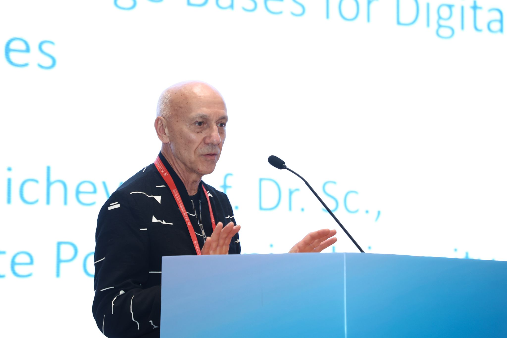 英国皇家工程院院士Constantinos Soutis,加拿大皇家科学院院士、加拿大工程院院士姜晶,德国国家科学与工程院院士Heinrich Otthein,波兰华沙经济学院教授Artur Nowak-Far,俄罗斯自然科学院院士Kuzmichev Victor,意大利艺术研究院院士Claudio Rocca,巴西科学院院士袁锦昀,中国工程院外籍院士、新加坡国立大学教授Seeram Ramakrishna,哈萨克斯坦国家高等教育科学院院士、哈萨克斯坦一美国大学校长Assylbek Issakhov等分别聚焦“织物电子赋能大健康”“人工智能赋能大制造”“智能时代的艺术、设计与合作”三大前沿主题开展了精彩的学术交流。