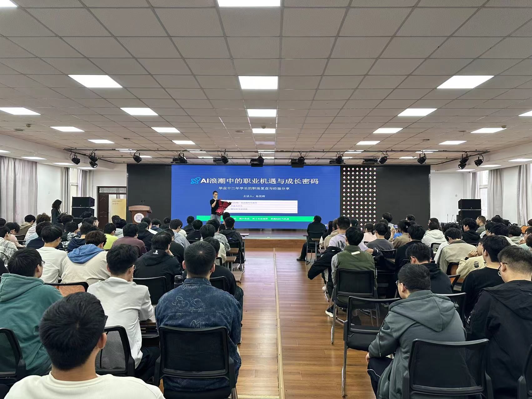 校庆活动亦洋溢着浓厚的学术氛围。计算机学院主办“计算机科学与技术学科建设暨研究生学术创新论坛”,南京信息工程大学付章杰教授、安徽大学崔杰教授、中国科学院信息工程研究所孙利民研究员、北京航空航天大学彭浩教授作前沿学术报告,助力学科水平提升;此外,学院举办的“华成杯”大学生程序设计竞赛等学术科技活动,吸引众多同学参与,展现了学校在创新人才培养方面的积极探索与丰硕成果。人工智能学院举办“CCF走进高校/CSIG中国行”活动。来自南开大学、宁波大学、北京邮电大学、北京工业大学及中国科学院软件研究所的多位专家围绕多模态文档大模型、太阳耀斑预测、大模型智能体、脑电接口技术及人机增强智能等前沿课题作专题报告。现场师生积极参与交流,气氛热烈。智慧能源与环境学院举办“研究生创新教育讲座”,01级校友、正高级工程师吴晓晖为师生作“AI算力中心的发展和绿色低碳建设”专题学术报告,通过学术交流激活校友资源,完善“校友反哺”育人机制。