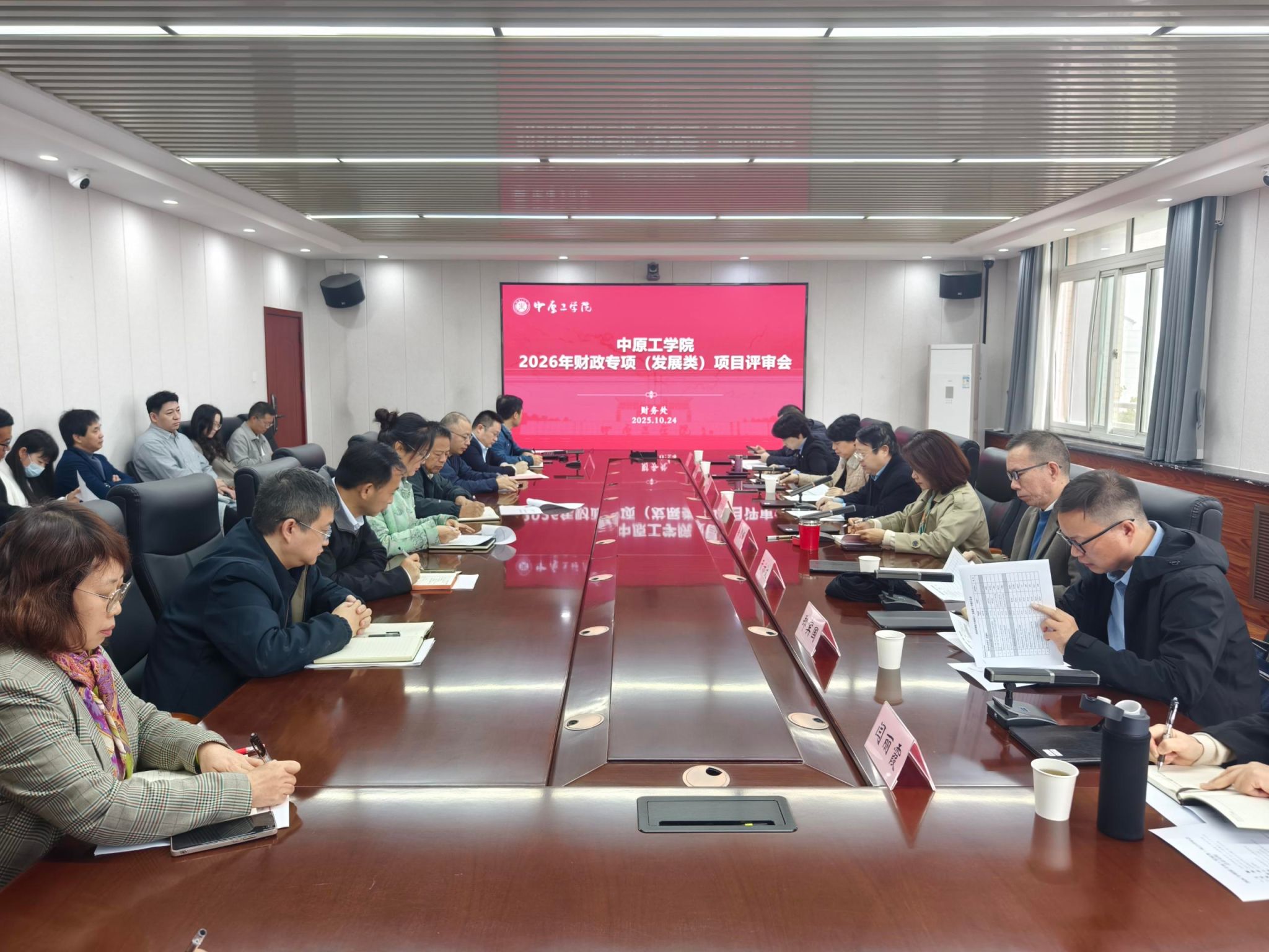 为做好资金保障,优化支出结构,着力提升资金使用效益,确保资金投向与学校规划发展高度匹配,10月24日,财务处在龙湖校区组织召开2026年项目库建设评审会。会议邀请河南工业大学、河南中医药大学、郑州轻工业大学、郑州航空工业管理学院的财务处、发展规划处负责人和校内教授作为评审专家,对我校初步通过评审的25个项目进行评审。副校长付主木致欢迎辞并提出评审目标和要求,财务处处长余黎峰主持评审会,相关职能部门负责人、项目负责人进行现场汇报。