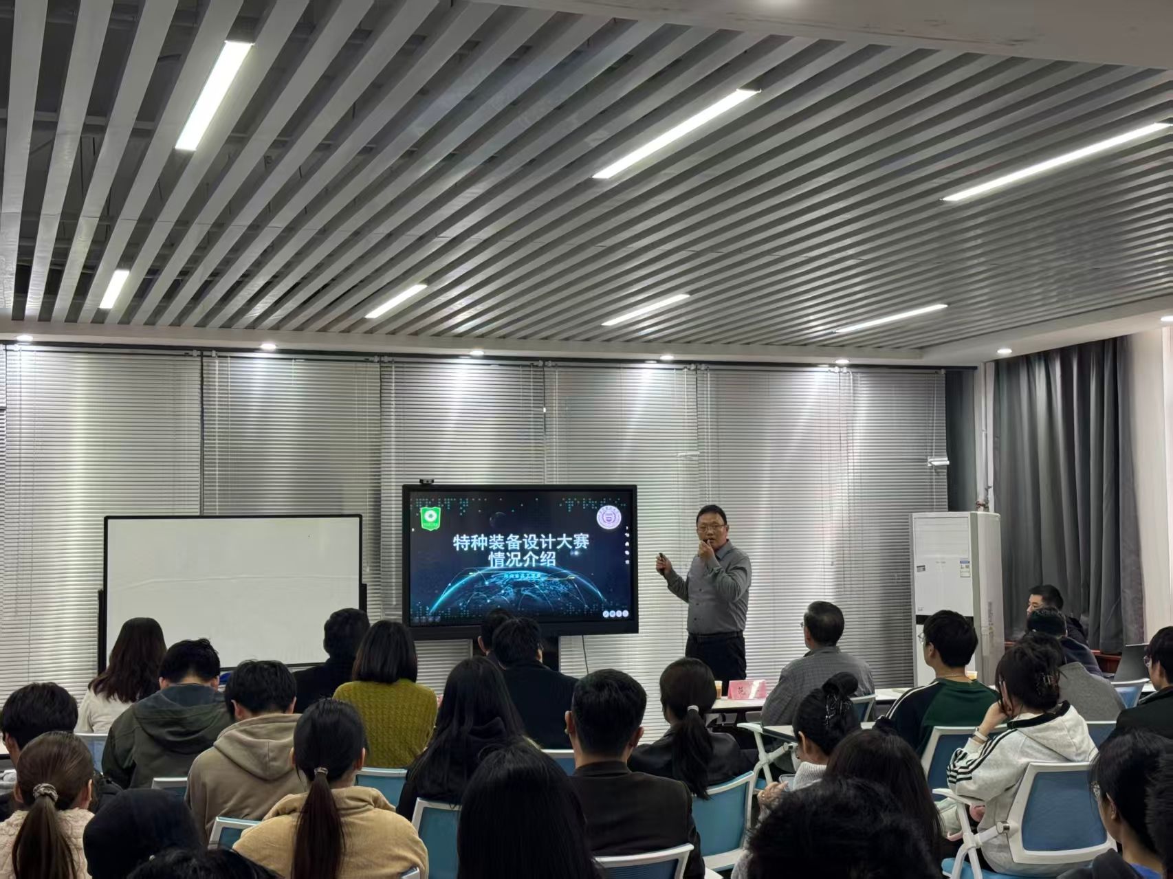 为推动国防科技创新与产学研融合,促进多学科交叉协同发展,10月30日,由我校网络空间安全学院主办的“2025年特种装备创新设计大赛河南赛区”专题宣讲会在龙湖校区举行。河南省兵工学会秘书长王志东、理事长范军、副理事长张刚、郑州轻工业大学教务处副处长黄伟,中原工学院副校长杨坤、网络空间安全学院执行院长潘恒、教师代表曲晓东等出席宣讲会。网络空间安全学院、计算机学院、人工智能学院、智能机电工程学院、艺术设计学院等多个学院师生代表共计90余人参会。宣讲会由网络空间安全学院党总支副书记、副院长邢颖主持。