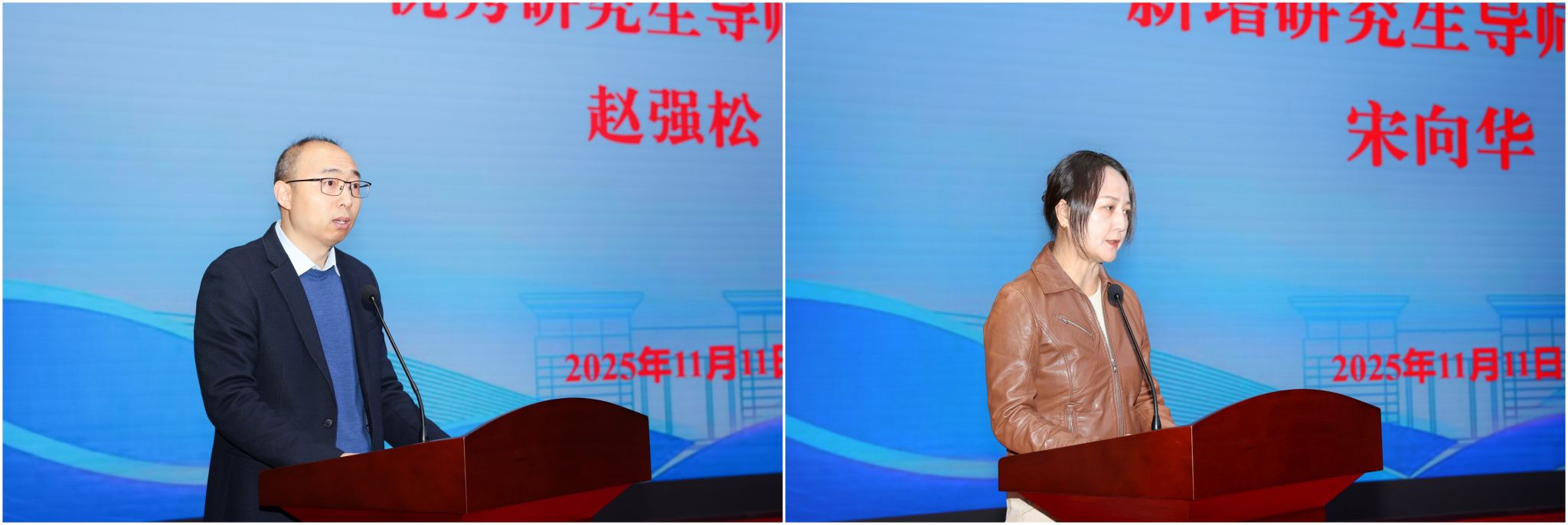 优秀导师代表、自动化与电气工程学院赵强松老师和新增导师代表、艺术设计学院宋向华老师分别发言。