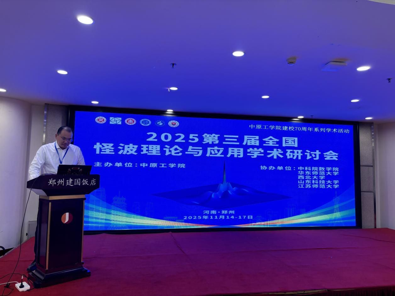 11月14日至16日,由中原工学院主办,中国科学院数学与系统科学研究院、华东师范大学、西北大学、山东科技大学及江苏师范大学联合协办的“第三届全国怪波理论与应用学术研讨会”在郑州召开。本次会议是中原工学院70周年校庆系列学术活动之一,旨在聚焦怪波系统及相关数学理论方法的国际前沿议题与国家重大发展需求,搭建多学科交叉融合平台,促进新思想、新理论、新方法、新技术与新应用的深度交流,推动国内怪波理论研究及其交叉领域应用的创新发展。来自清华大学、复旦大学、上海交通大学、中国科学院等100 余所高校及科研院所的300余位专家学者齐聚一堂,共话学术前沿。