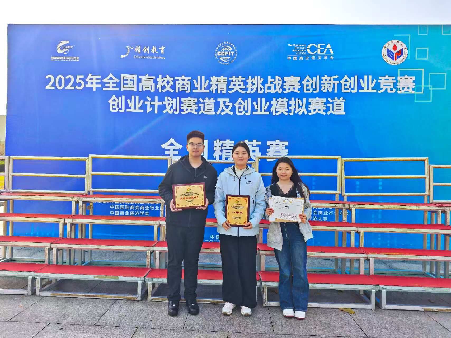 近日,由中国国际贸易促进委员会商业行业委员会、中国国际商会商业行业商会和中国商业经济学会联合主办的2025年全国高校商业精英挑战赛创新创业竞赛全国精英赛在山东师范大学圆满落幕。我校参赛团队发挥出色,再次斩获佳绩。