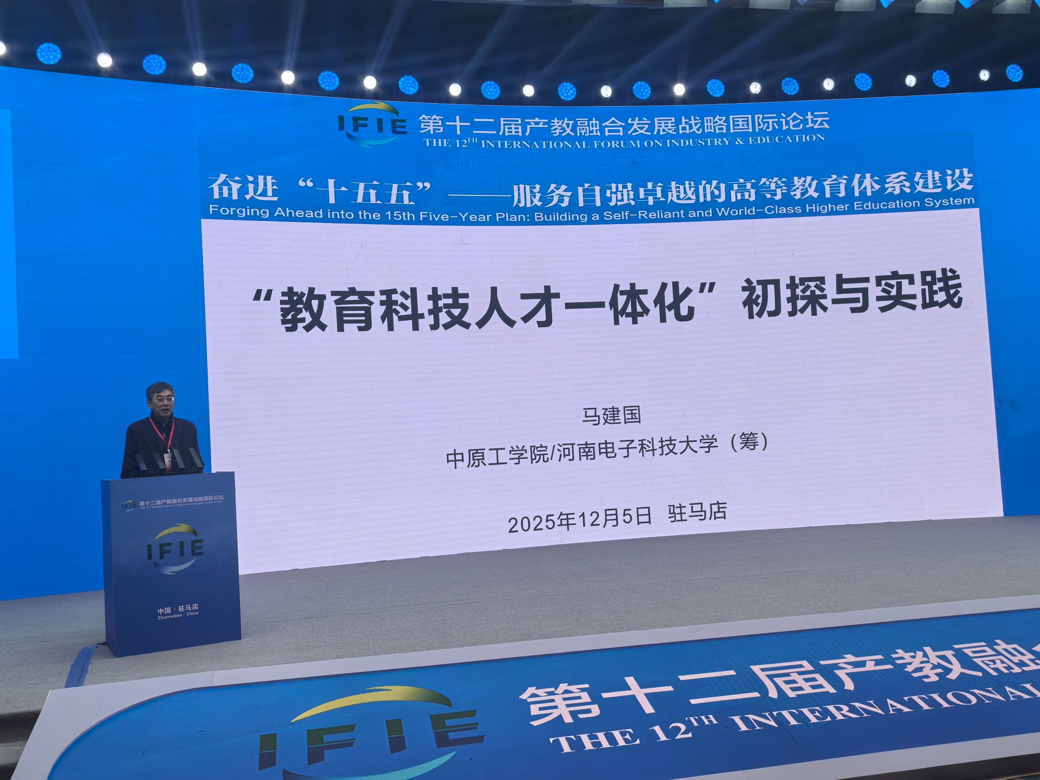 12月4日至5日,第十二届产教融合发展战略国际论坛在黄淮学院召开。我校学术副校长、集成电路学院院长马建国教授受邀出席论坛并作《“教育科技人才一体化”初探与实践》专题报告。
