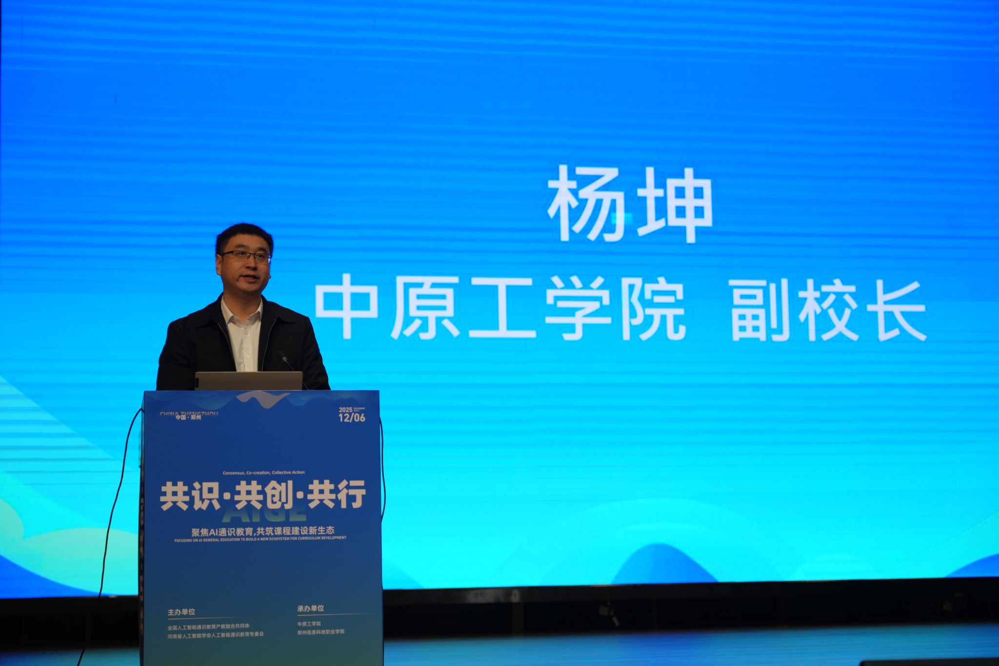 我校副校长杨坤教授出席会议并致辞。他介绍了我校人工智能通识课的开设情况,并表示希望以本次活动为契机,加强与行业专家的交流互鉴,加快推进人工智能通识课程体系和人工智能教育新生态的建设与发展。