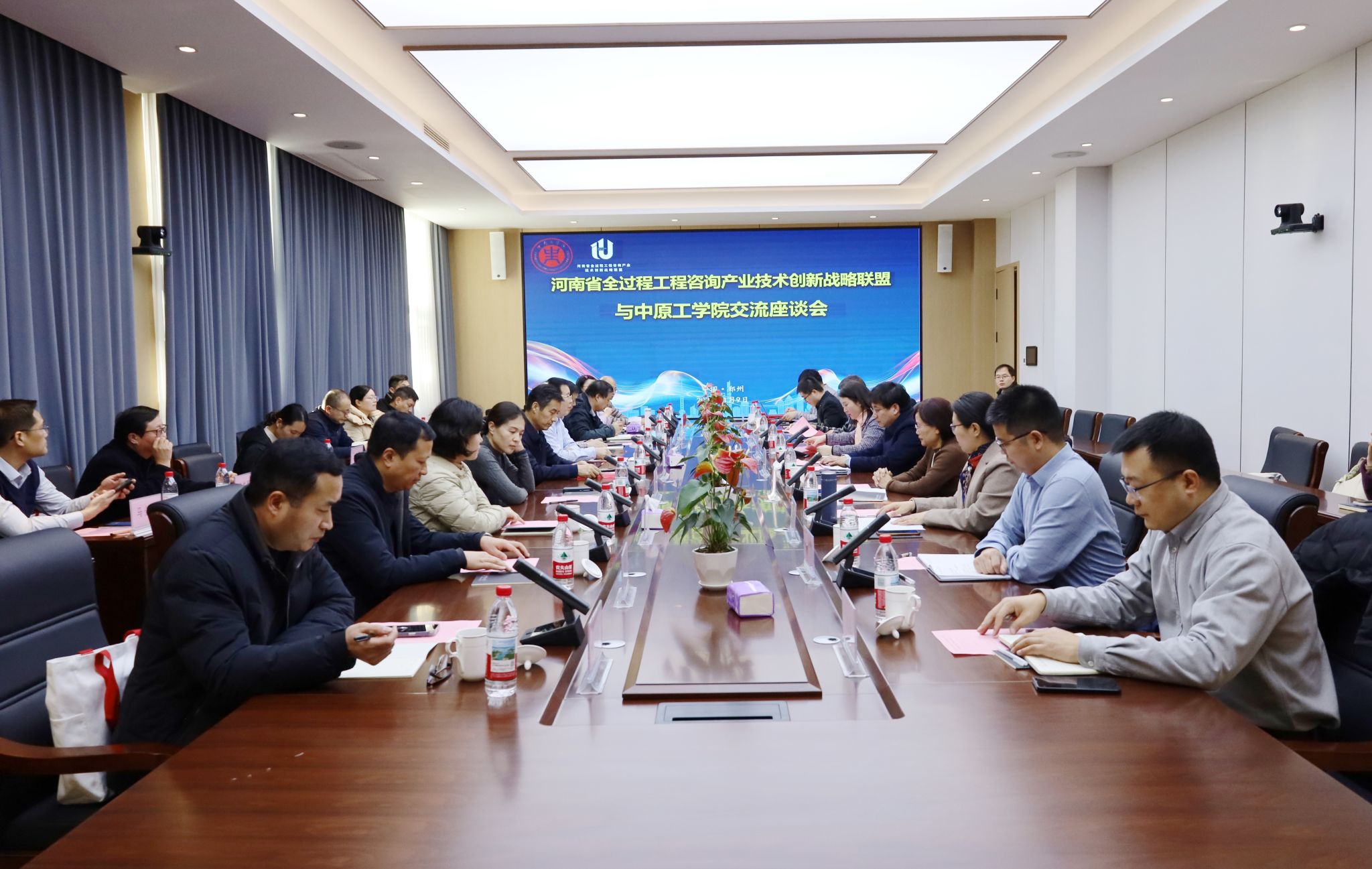 1月9日,河南省全过程工程咨询产业技术创新战略联盟理事长、中新创达咨询有限公司董事长杨明宇率联盟共建单位、高校专家代表来我校交流,共商合作、共谋发展。副校长瞿博阳,学报编辑部主任柳素平,智能建造与建筑工程学院党委书记张春丽、院长赵毅等参加座谈会。座谈会由赵毅主持。