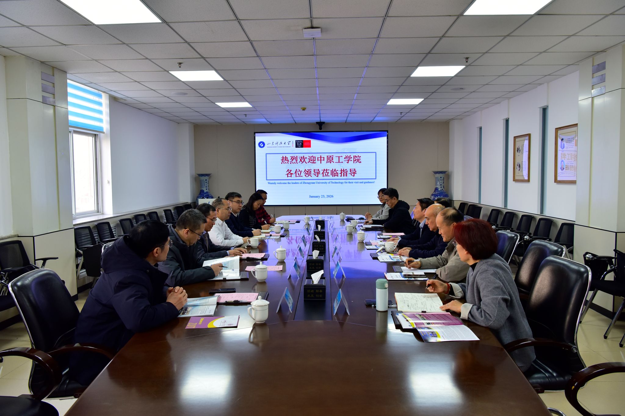 会上,校领导认真听取了山东科技大学在国际交流与合作办学方面的整体情况,并对斯威本学院的合作模式、培养体系、教学管理、师资建设及育人成效等给予充分肯定,对山东科技大学的热情对接与经验分享表示感谢。