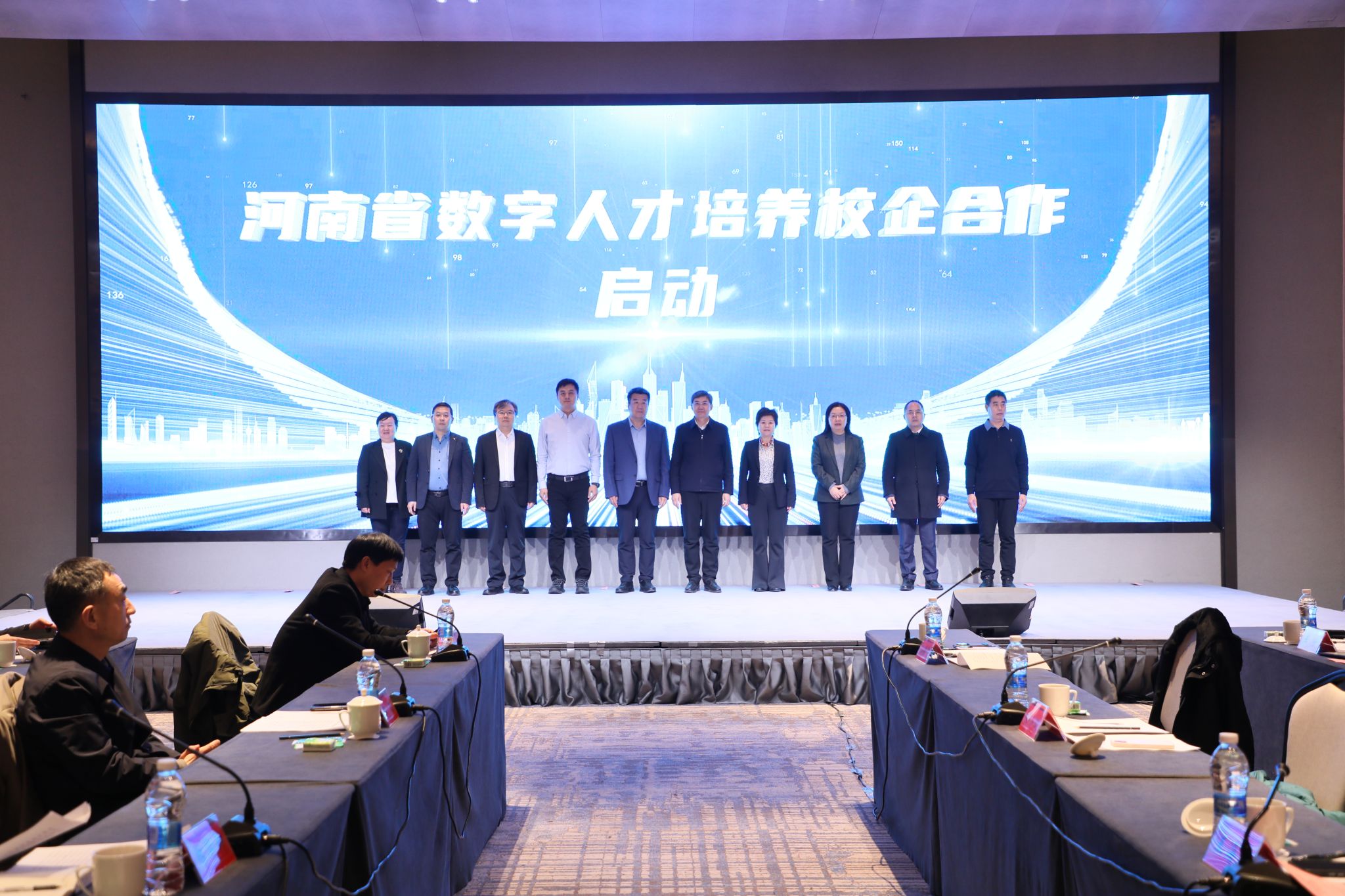 仪式上,省委组织部,省发展和改革委员会,省教育厅,省科学技术厅,省人力资源和社会保障厅五部门联合发布了《河南省数字人才培养校企合作倡议书》,明确提出了共担育人使命、深化路径融合、联合科研攻关、优化发展生态等四方面倡议,为凝聚各方共识、明晰行动方向提供了重要遵循。随后,夏元清与郑州大学、河南大学、华为河南公司等高校与企业代表共同启动了河南省数字人才培养校企合作。