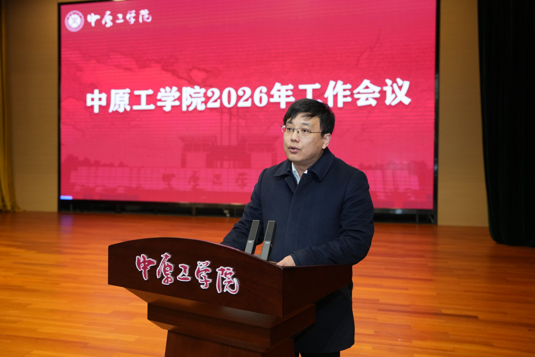围绕 2026 年核心工作,郭涛从三个方面提出明确要求。一是以更名申博双战双赢争取发展的历史主动。全校要凝聚合力,为筹建工作取得最终胜利营造良好校园氛围,筑牢最实服务保障;要充分认识获得博士学位授予权对学校发展的重大意义,全力攻坚冲刺博士学位授予单位,激活学科发展新动能,为学校高质量发展注入持久活力;要抓好航空港校区建设,锚定时间节点,强化攻坚突破,为学校更名申博筑牢坚实硬件根基。二是以刮骨疗毒的决心推进综合改革,激发发展内生动力。要聚焦薪酬分配、岗位设置、职称评审、校区功能优化等重点领域破局改革,让“优绩优酬”成为铁律、“有为者有位”成为常态;强化服务、人文、沟通、执行、资金“五大保障”,推动职能部门从“管理者”向“服务者”转变,构建全周期人文关怀体系,打造立体化诉求平台,建立决策落实闭环机制,多渠道拓展办学收益、提升资金使用效益;将2026年确立为“制度建设年”,对全校规章制度开展全量起底、分类评估,厘清“废、改、立”清单,构建以大学章程为统领的制度体系,同时强化制度刚性约束,建立全链条落实机制,推动制度优势转化为治理效能。三是以高质量党建引领高质量发展、实现高效能治理。要强化政治引领,把党的政治建设摆在首位,深化理论学习制度,完善党建三级联动培育机制,持续加强意识形态工作,守牢高校意识形态阵地;开展干部换届工作,坚持政治标准首位、德才兼备导向,结合树立和践行正确政绩观学习教育,锻造政治过硬、本领高强、作风优良的干部队伍;坚持全面从严治党治校,压实管党治党责任,完善政治监督模式,持续正风肃纪反腐,营造风清气正的校园生态;统筹发展和安全,树牢底线思维,建立风险排查预警机制,重点关注学生心理健康、校园矛盾化解,常态化开展校园安全隐患整治,维护学校安全稳定大局。