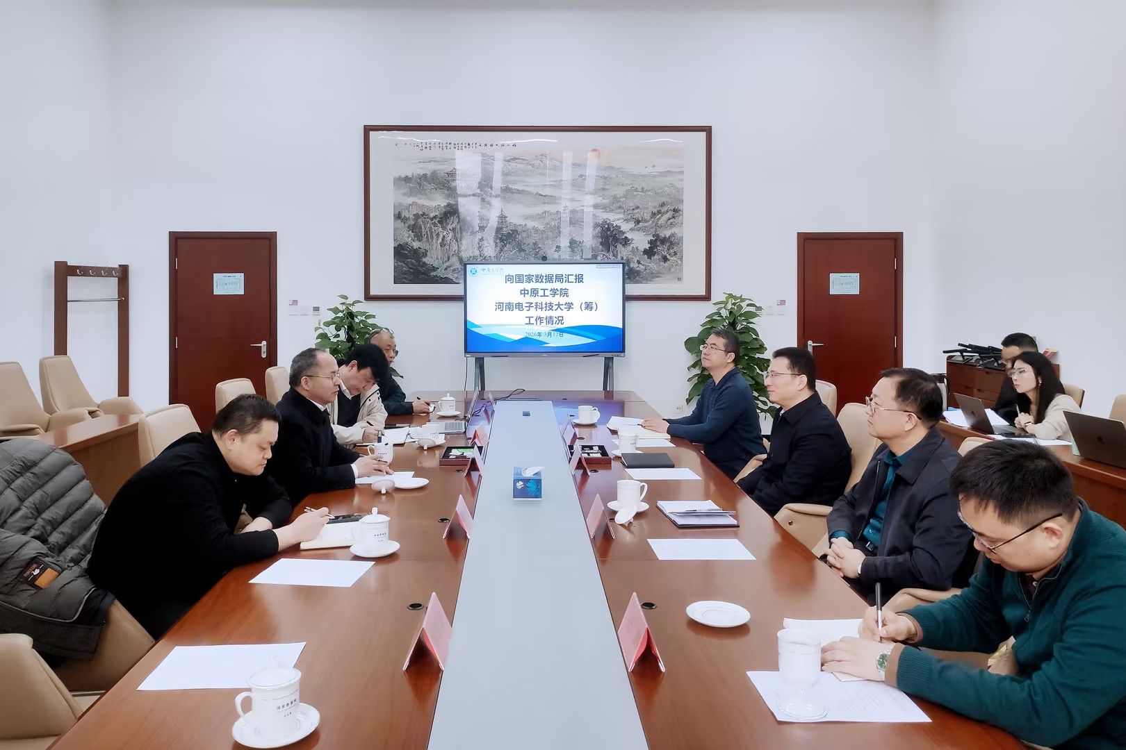 夏元清向国家数据局介绍了中原工学院的基本情况和发展前景。他表示,当前学校正在贯彻落实河南省委、省政府战略决策,聚焦“1+2+4+N”目标任务体系,全力以赴推进河南电子科技大学筹建工作。学校在数据技术、数字安全、数字经济、数字治理等领域,具有良好的研究基础和学科专业特色,能够在数据要素学科专业建设和数字人才建设等方面发挥更大的作用。