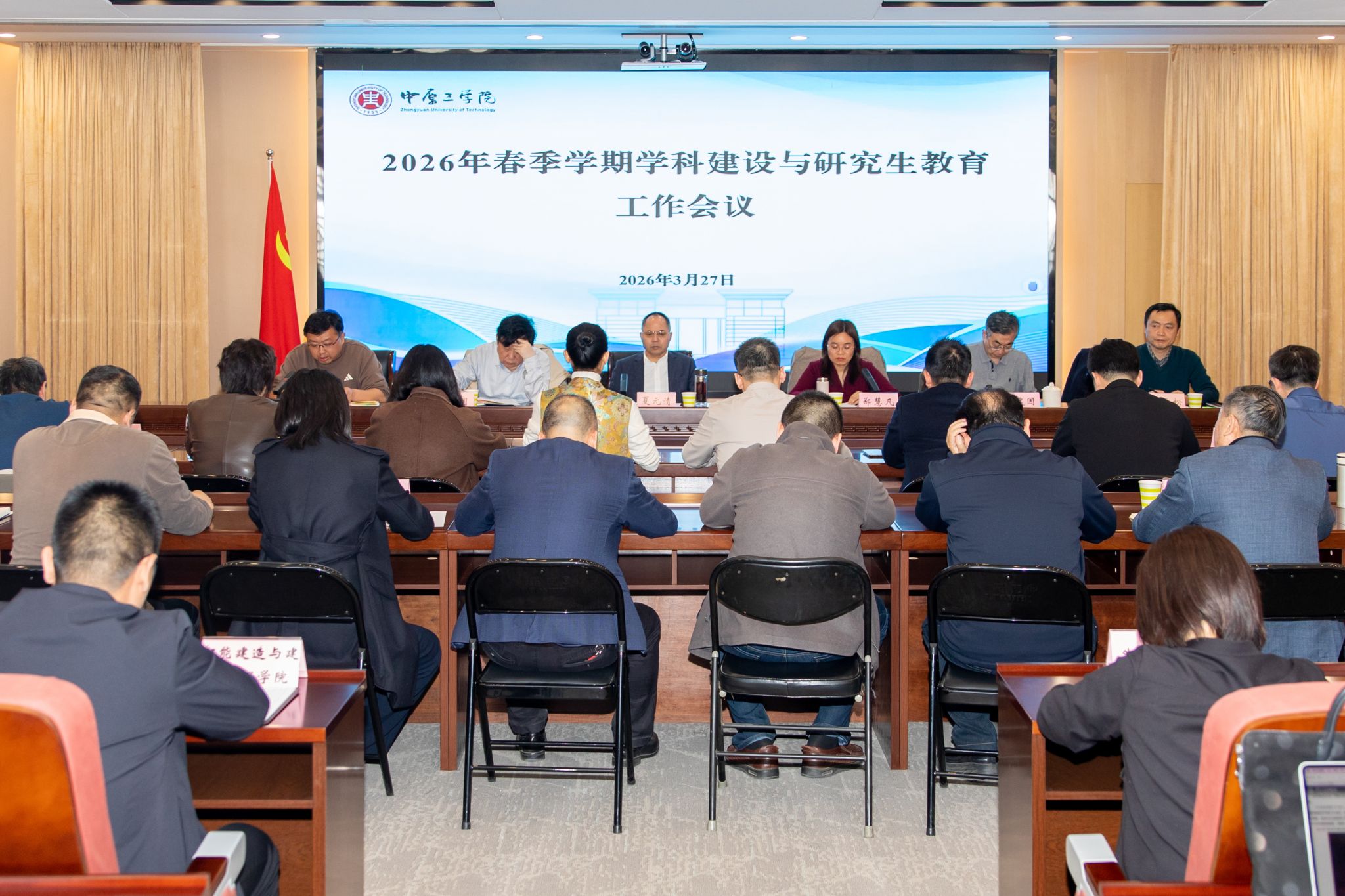 3月27日,我校在龙湖校区召开2026年春季学期学科建设与研究生教育工作会议。党委副书记、校长夏元清,副校长郑慧凡,学术副校长斯雪明、马建国出席会议,二级学院(研究院)院长、分管学科建设与研究生教育副院长、研究生秘书、研究生处全体工作人员参加会议,会议由郑慧凡主持。