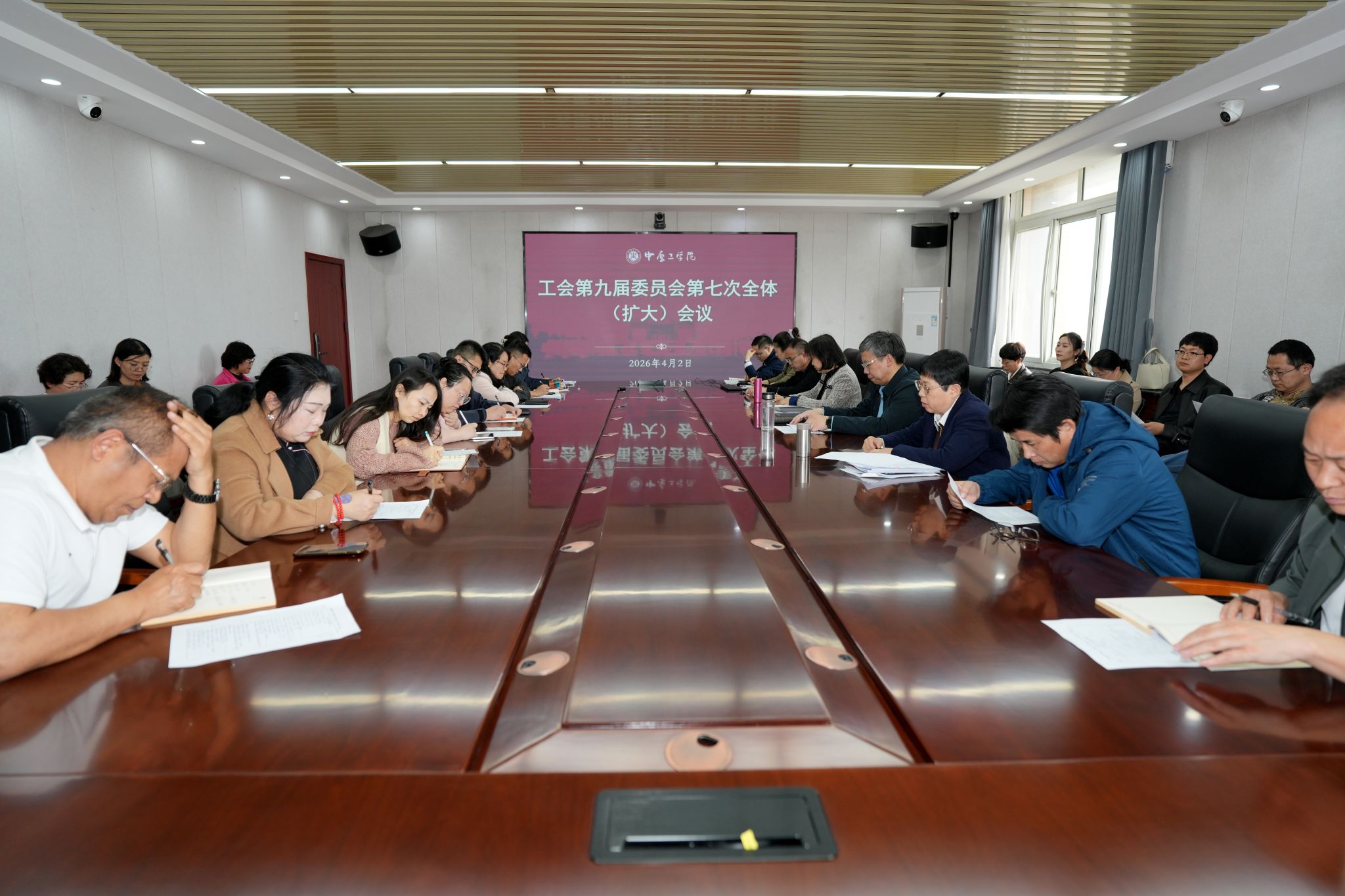 4月2日,我校工会第九届委员会第七次全体(扩大)会议在龙湖校区召开。校党委副书记、工会主席宋晓炜出席会议并讲话,工会委员会委员、各基层工会主席及校工会全体成员参加会议。会议由工会办公室主任赵巧萍主持。