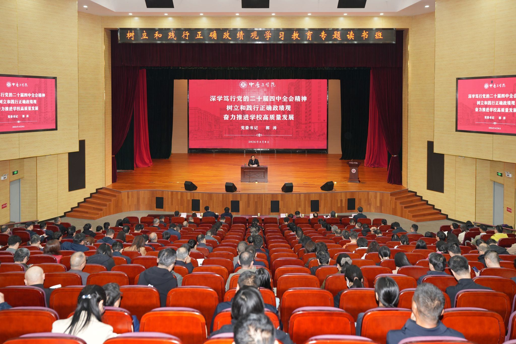 开班式上,党委书记郭涛以《深学笃行党的二十届四中全会精神 树立和践行正确政绩观 奋力推进学校高质量发展》为题,结合学校改革发展实际,从“深刻领会全会精神的核心要义,筑牢思想根基”“精准把握全会精神与学校发展的契合点,明晰发展路径”“以正确政绩观为指引推动重点工作落地见效,凝聚奋进力量”“学习贯彻习近平总书记关于树立和践行正确政绩观的重要论述,再谱发展新篇”四个方面,为全体学员作了一场深入浅出、内涵丰富、针对性强的专题辅导报告。他要求全校党员领导干部要深刻把握树立和践行正确政绩观的核心要义,强化政治担当、提升政治能力;要带头深入一线调研,科学谋划发展思路,主动认领最难任务、攻克最硬堡垒;要带头践行以师生为中心的发展思想,主动倾听师生呼声、解决师生在教学科研、工作生活中的急难愁盼问题;要带头弘扬务实作风,力戒形式主义、官僚主义,确保各项工作落到实处;要带头团结协作,形成“上下一盘棋、全员一条心”的工作格局,用实际行动诠释责任与担当。