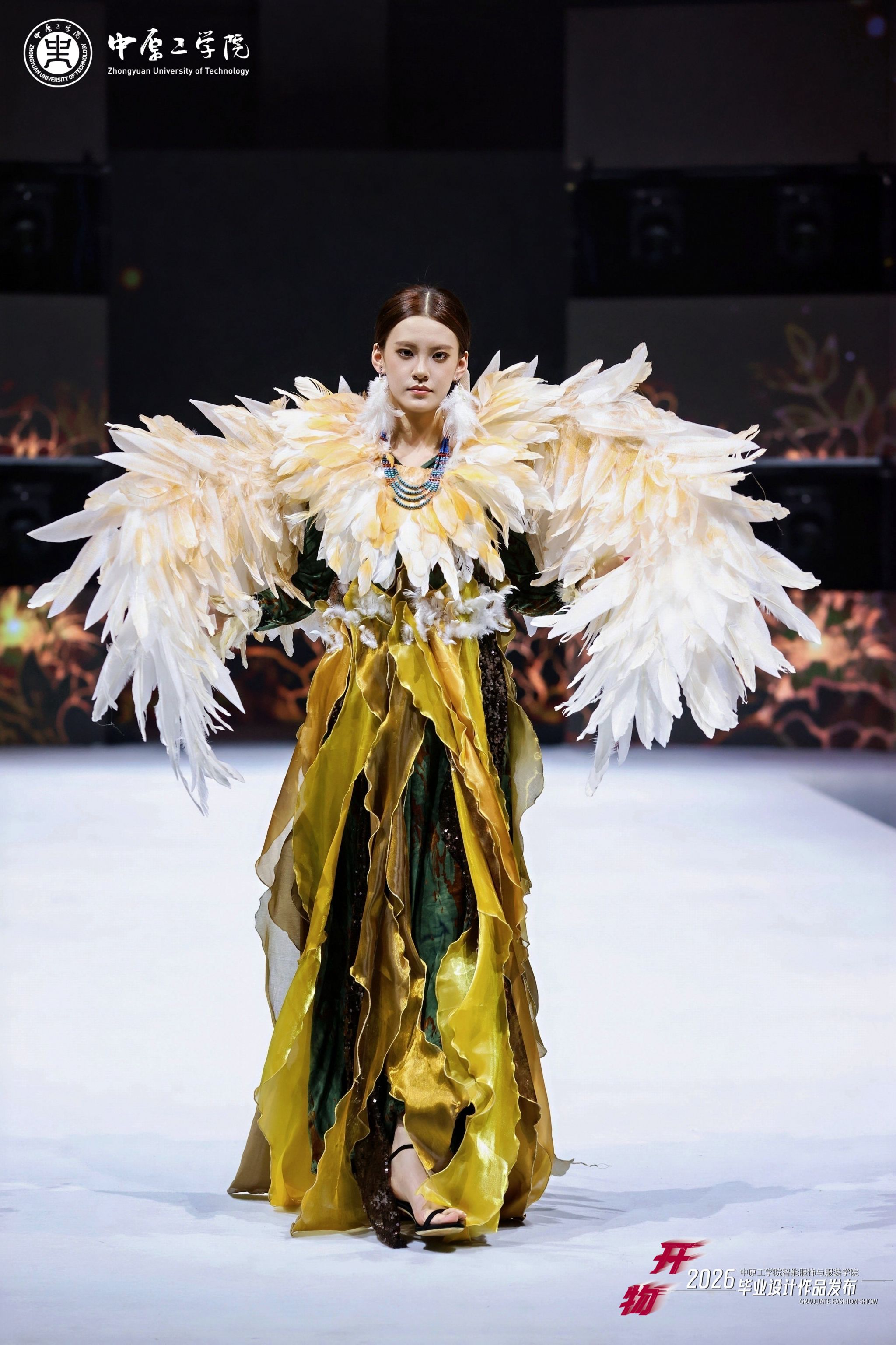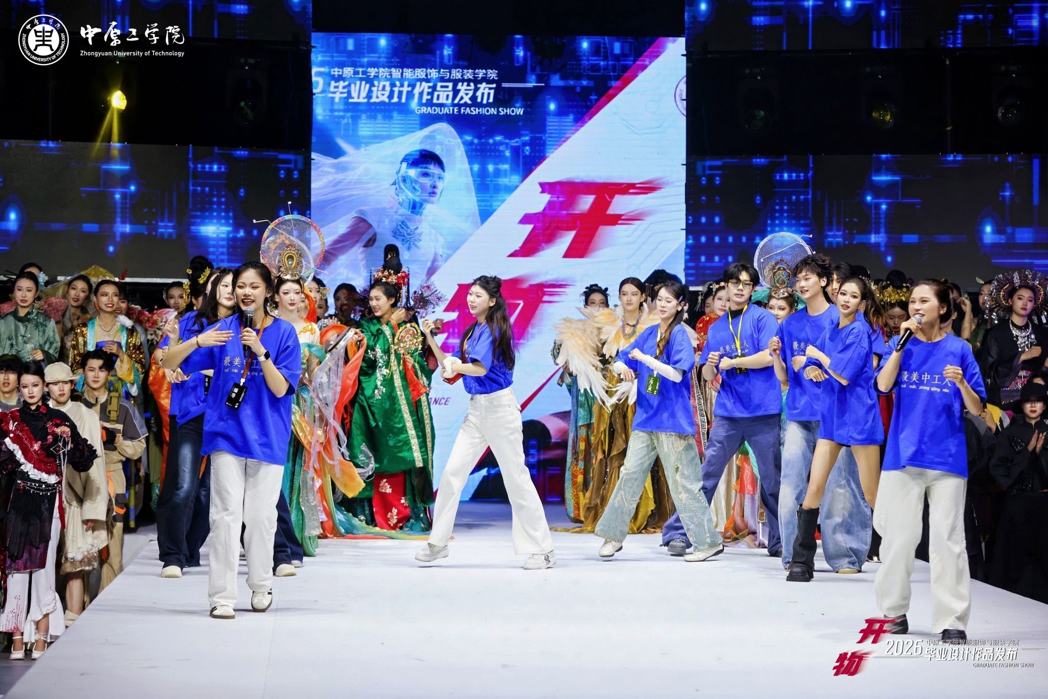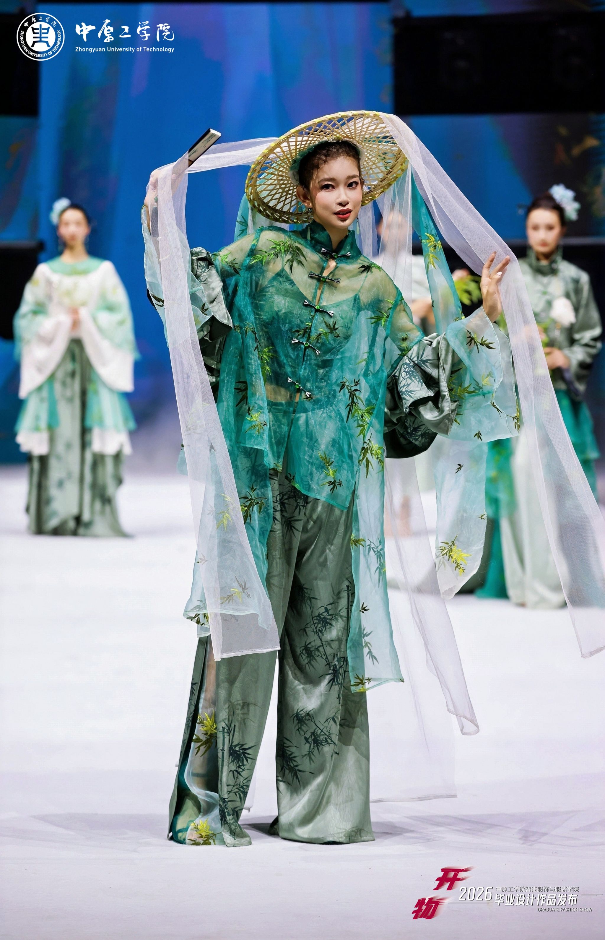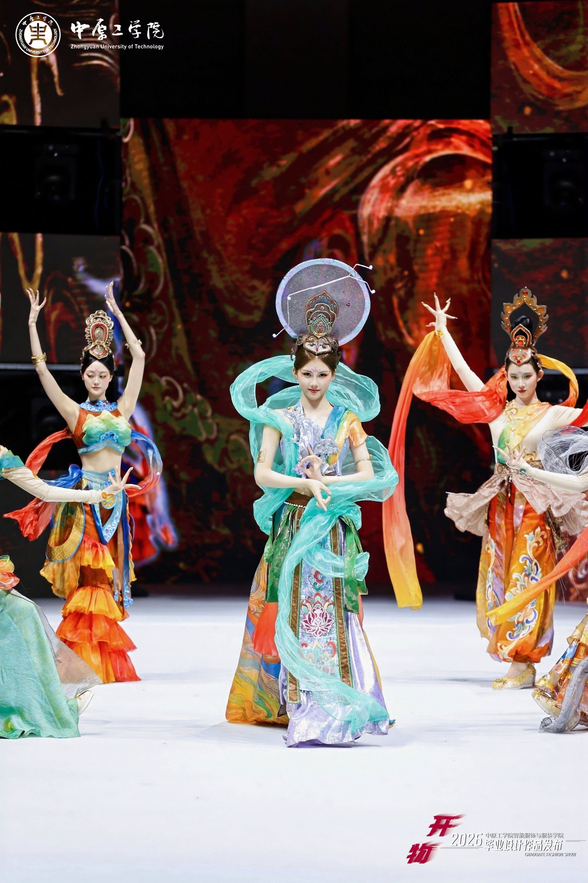 本次展演以“开物”为主题,寓意“开物成务,智造创新”,突出“服装+智能”“设计+智能”理念,将前沿科技元素融入服装创新设计,共展示学校服装设计专业2026届毕业生创作的40个系列近200件作品,其中多个系列作品入围第31届中国时装设计新人奖,在2026“中华杯·太酷”服装设计大赛、全国宋韵服装时尚大赛等赛事中荣获佳绩。担纲本次演出的服装模特均为我校表演专业在校生,多位模特曾获得中国职业模特大赛总决赛“十佳模特”、环球超模国风大赛冠军、龙腾精英超级模特大赛国际组冠军等奖项。
