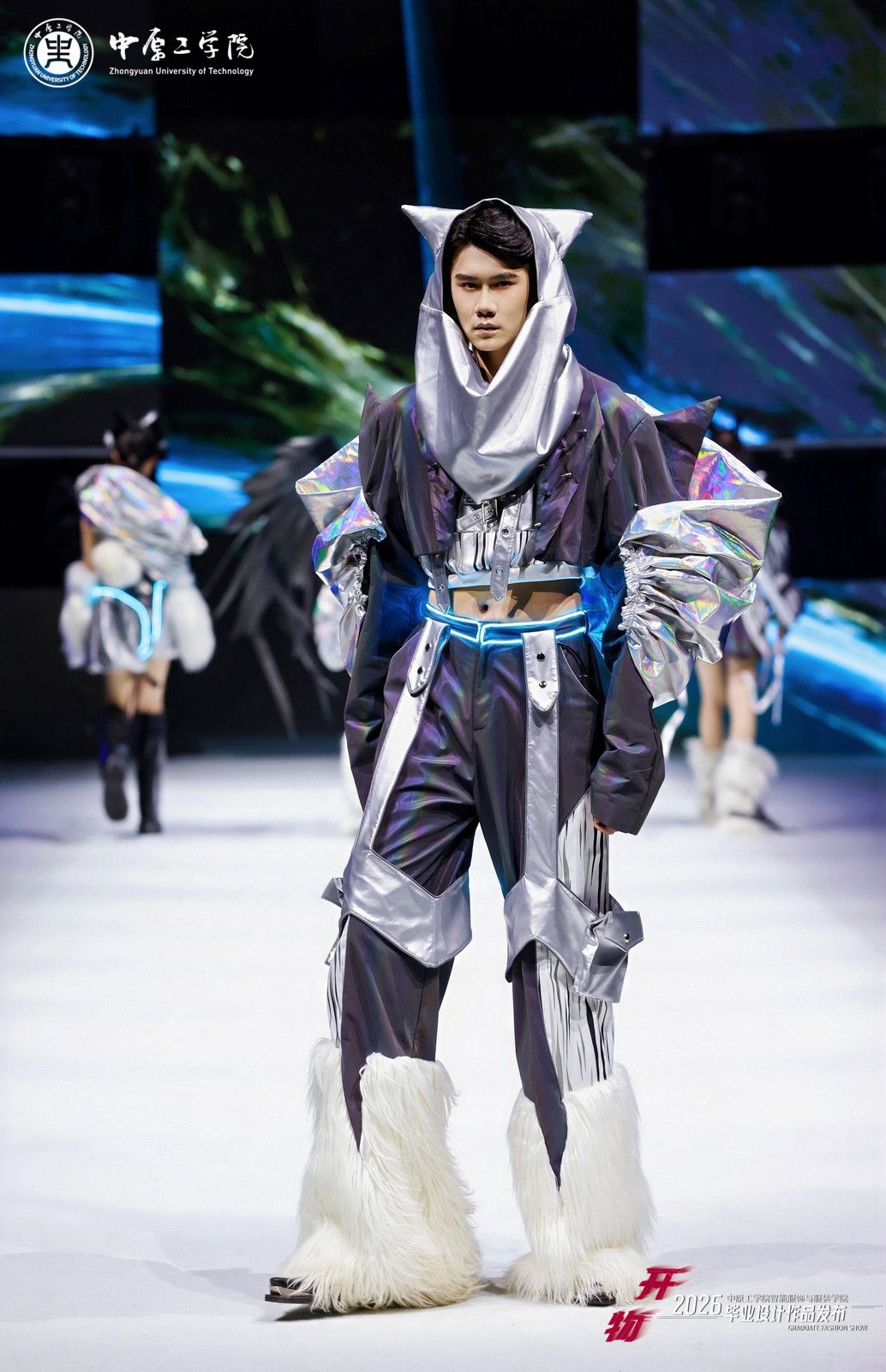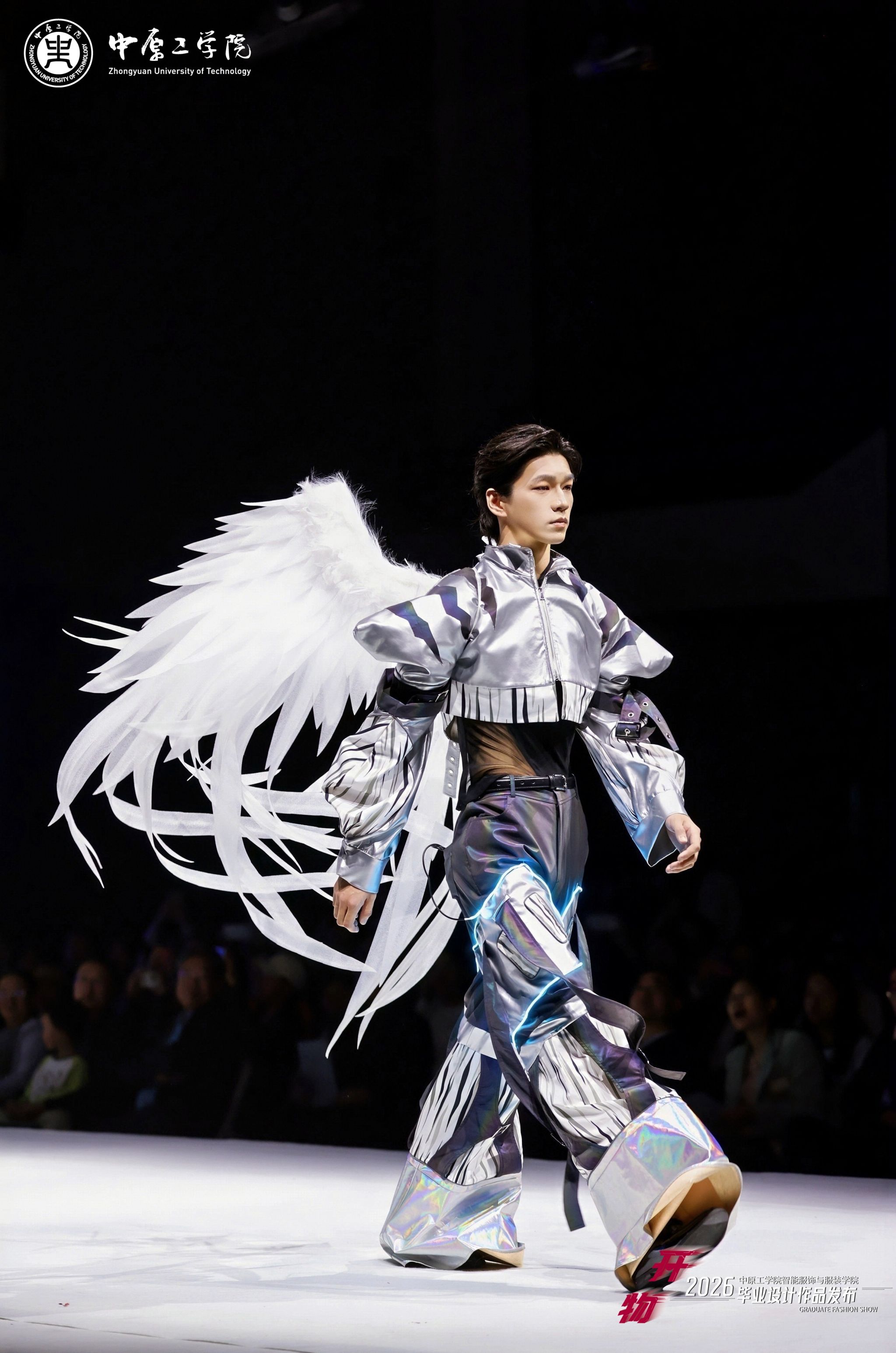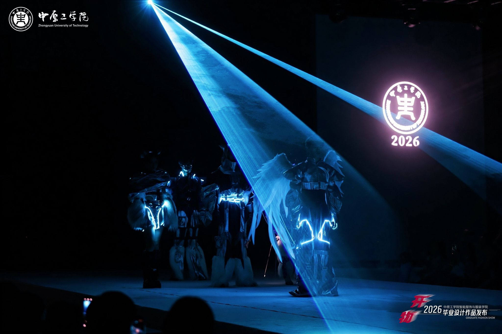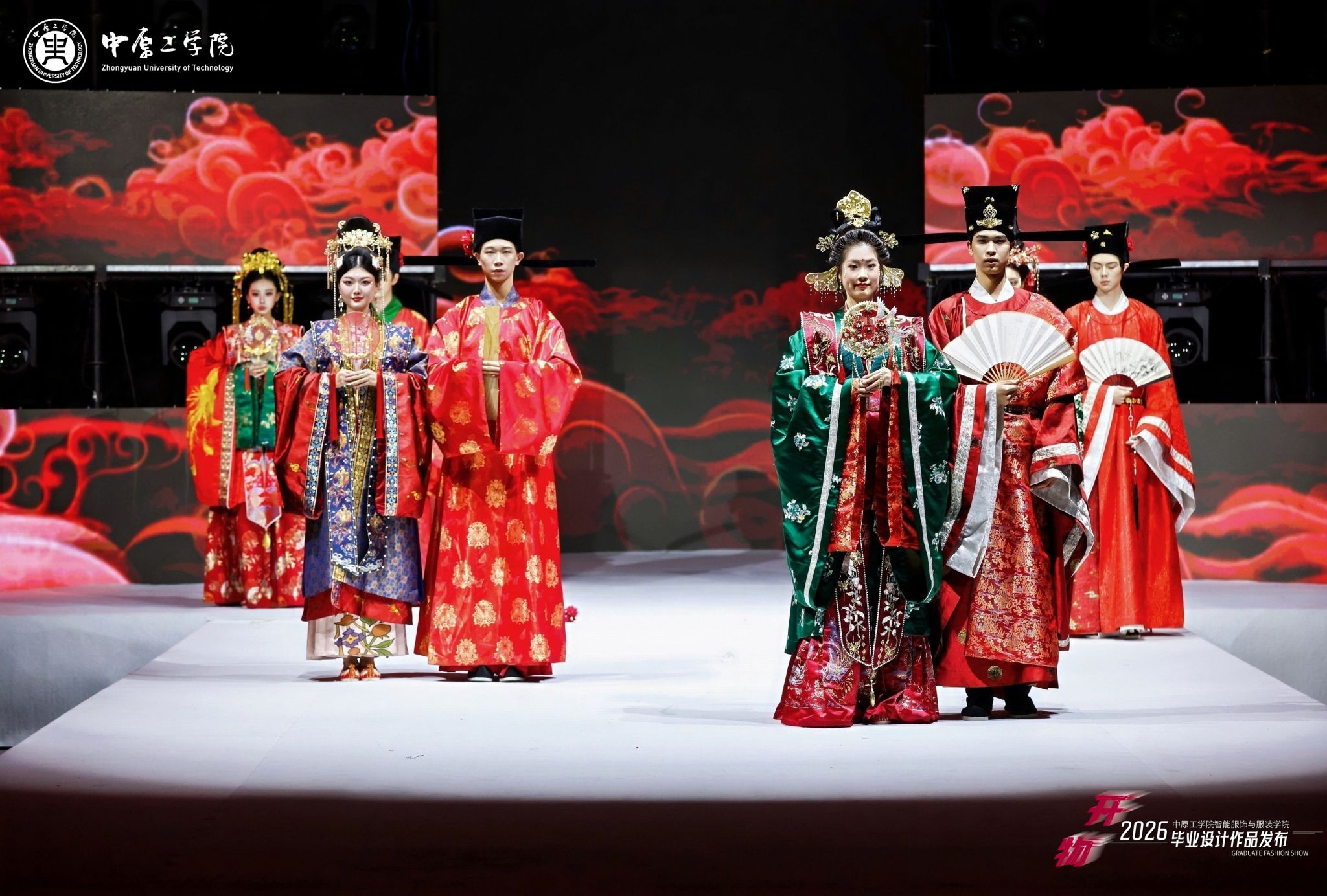 本次展演以“开物”为主题,寓意“开物成务,智造创新”,突出“服装+智能”“设计+智能”理念,将前沿科技元素融入服装创新设计,共展示学校服装设计专业2026届毕业生创作的40个系列近200件作品,其中多个系列作品入围第31届中国时装设计新人奖,在2026“中华杯·太酷”服装设计大赛、全国宋韵服装时尚大赛等赛事中荣获佳绩。担纲本次演出的服装模特均为我校表演专业在校生,多位模特曾获得中国职业模特大赛总决赛“十佳模特”、环球超模国风大赛冠军、龙腾精英超级模特大赛国际组冠军等奖项。