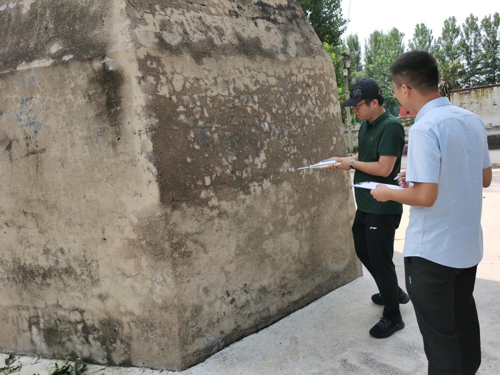 7月28日至30日,李新明、尹松、王志留三位老师联合河南省文物建筑保护研究院带着研究生顶着炎炎烈日到国家重点文物保护单位郑韩故城、古城寨等周边市、县土遗址现场进行调研,查验暴雨对大型土遗址的掏蚀、坍塌、植物倒伏所致的本体破坏等病害情况,对典型砖石质古塔地基基础、砖石及砂浆强度进行测试,测量评估暴雨所致沉降,为古建筑的稳定性劣化影响和沉降分析及古建筑保护修复提供了技术支撑资料。三天野外工作,太阳暴晒使得三位老师的皮肤出现不同程度晒伤,但他们却毫不在意,一心只想尽快勘察清文物受损情况,呈报给文物主管单位,尽快启动修复计划,保护好文化遗产。河南省文物建筑保护研究院及古建筑保护单位对三位老师的辛勤付出给予高度赞赏。