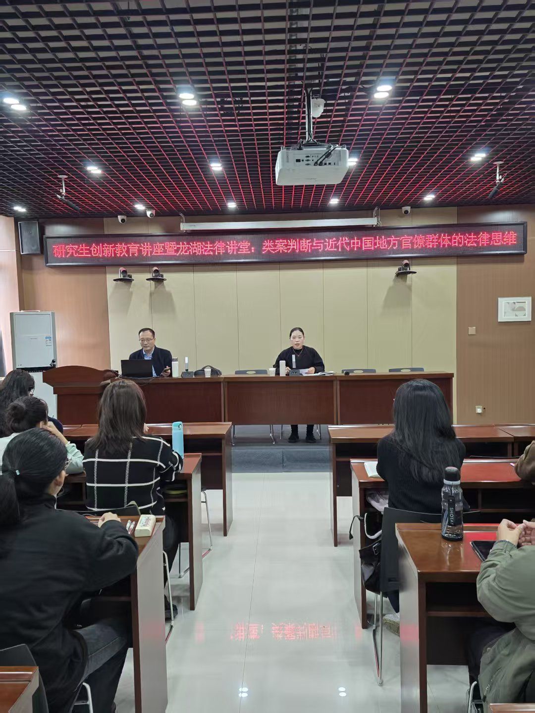 近日,受法学院(知识产权学院)邀请,我校2003级法学本科校友、河南工业大学法学院李耀跃教授在龙湖校区为师生作《类案判断与近代中国地方官僚群体的法律思维》专题讲座。本次讲座系我校研究生创新教育暨龙湖法律讲堂的重要活动,法学院(知识产权学院)全体研究生参加讲座。学院副院长张金艳教授主持讲座。