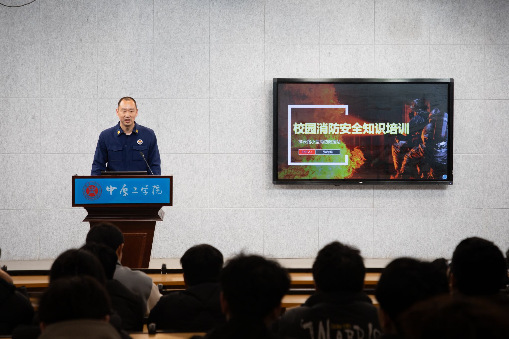 消防安全讲座上,张利超结合省内外校园火灾典型案例开展警示教育,科普了校园火灾防控、初起火灾扑救、火场逃生自救等实用知识。现场演示环节,张利超老师实操演示了灭火器与消防栓的规范使用流程,让师生直观掌握消防器材的使用技能。他提醒同学们时刻绷紧消防安全弦,严格遵守校园消防安全管理规定,杜绝宿舍违规用电等危险行为,切实做到防患于未“燃”。