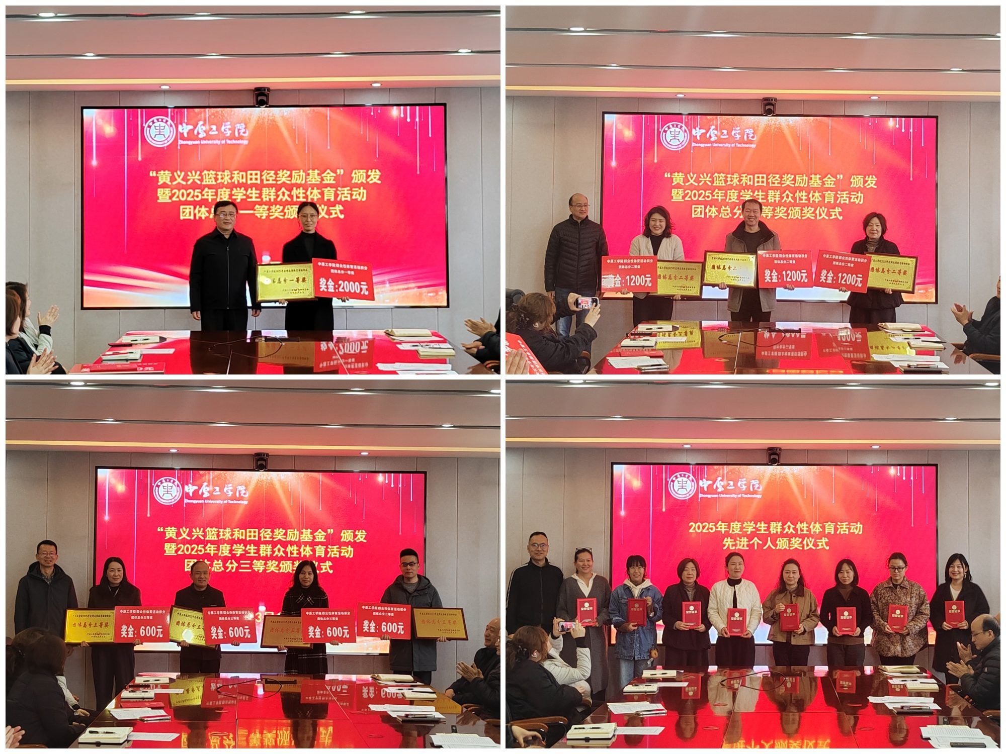 会上,魏建传达了全省教育系统深入落实“健康第一”工作部署暨健康学校建设试点推进视频会会议精神,通报了第39届校运会筹备进展情况;体育部副主任李学砦介绍了本届运动会竞赛规程和各部门任务分工;体育部党总支书记赵宏亮宣读了2025年群众性体育活动先进集体和先进个人表彰名单。随后,举行“黄义兴篮球和田径奖励基金”颁发仪式,副校长郑常青和相关部门负责人分别为获得2025年度学生群众性体育活动团体总分一等奖、二等奖、三等奖的学院及先进个人颁奖。
