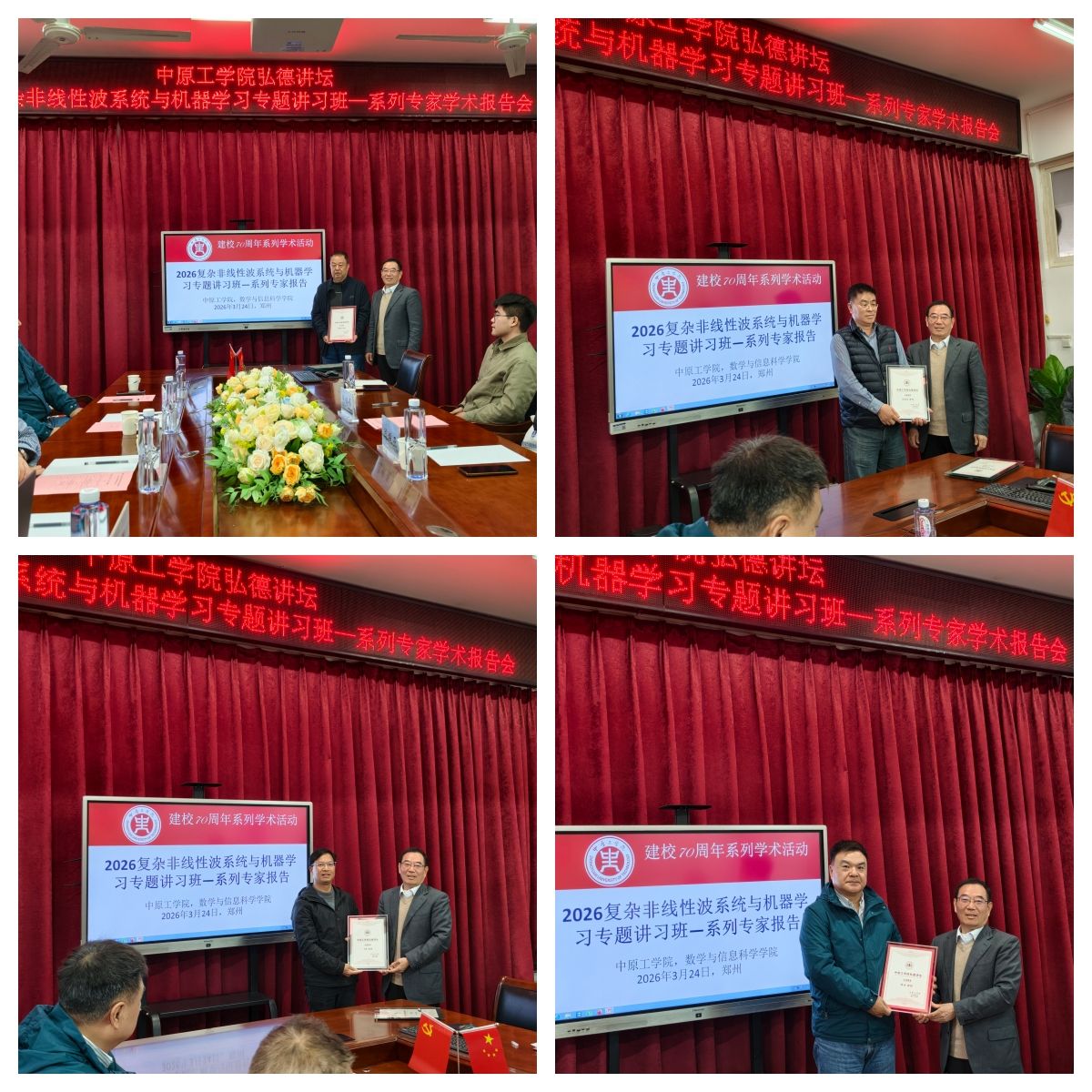 3月23日至25日,由我校数学与信息科学学院主办的“2026复杂非线性波系统与机器学习”天元数学专题讲习班——系列专家学术报告会(I)”在中原工学院龙湖校区成功举办。
