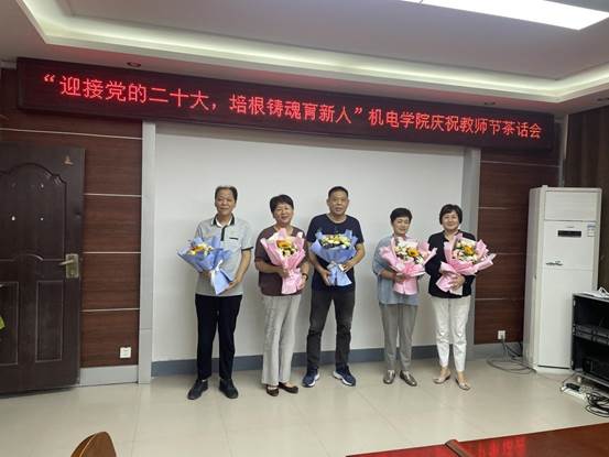 为庆祝第38个教师节,9月9日下午,机电学院在8号楼301会议室,举行以“迎接党的二十大,培根铸魂育新人”为主题的庆祝教师节茶话会。学院党委书记陈燃、院长崔陆军、副书记李云、副院长尚会超,资深正高职称教师代表、青年教师代表参加,副院长张丽娜主持茶话会。